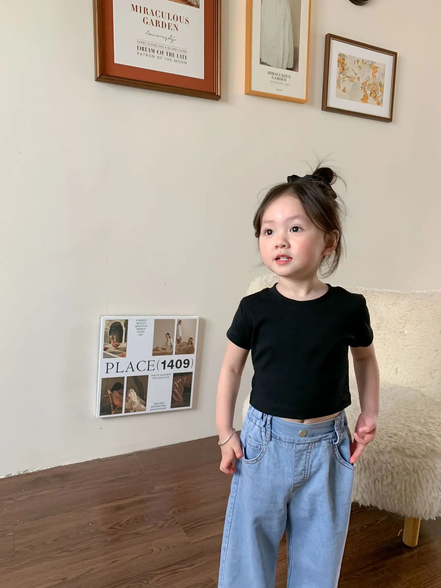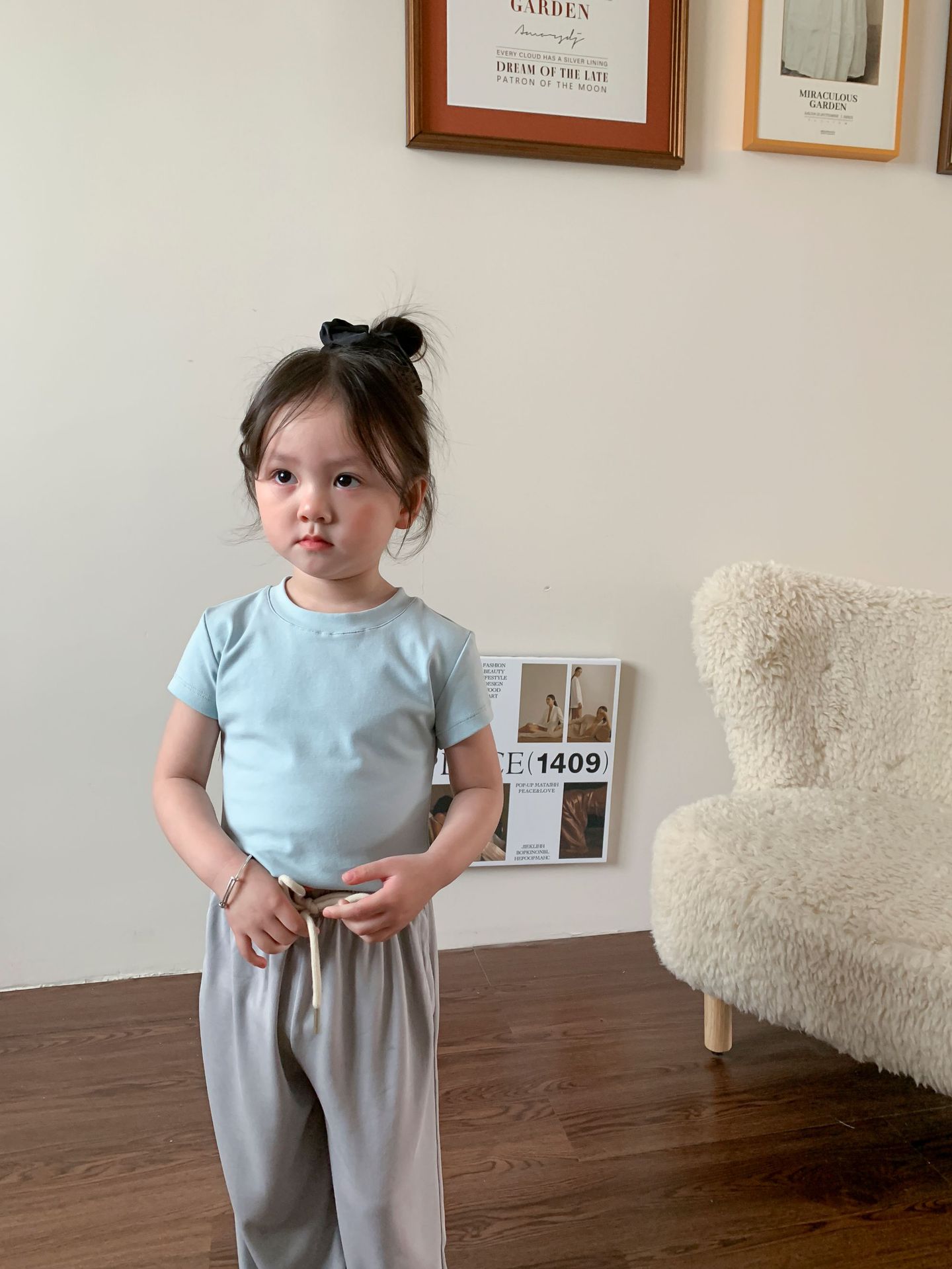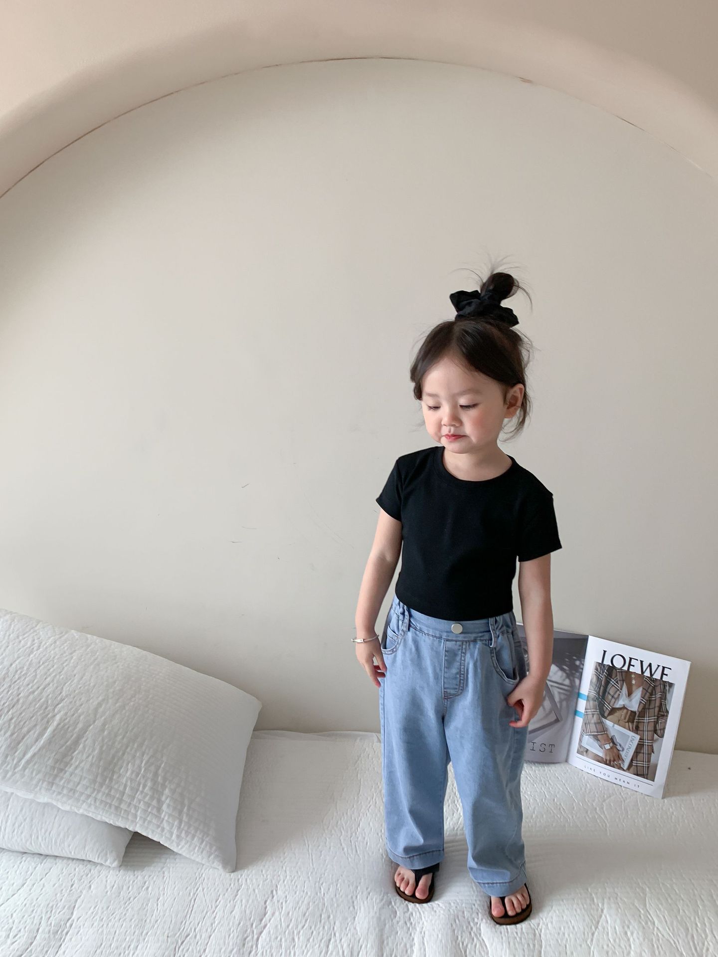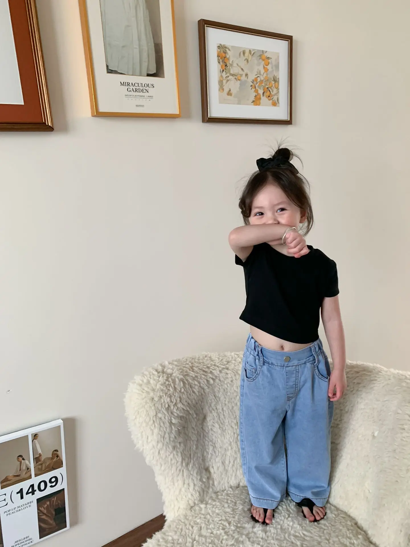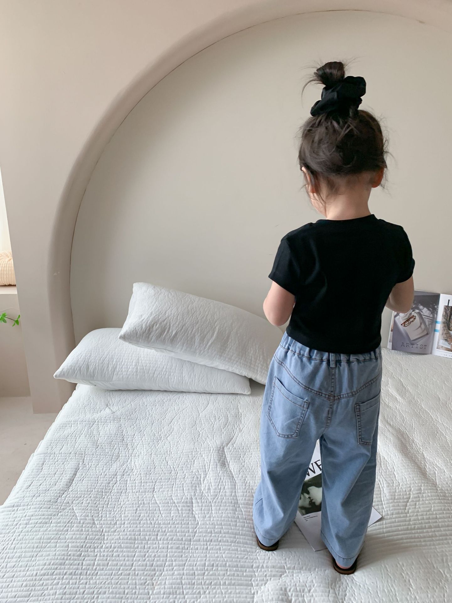 Летняя однотонная повседневная короткая футболка для девочек 2023