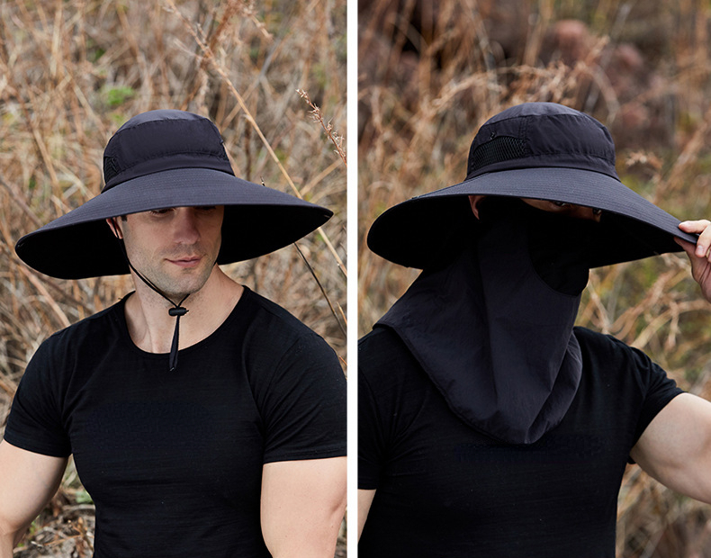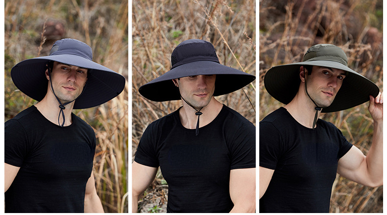 帽子男士大沿渔夫帽夏天遮阳防晒帽加大帽檐太阳帽户外帘子钓鱼帽