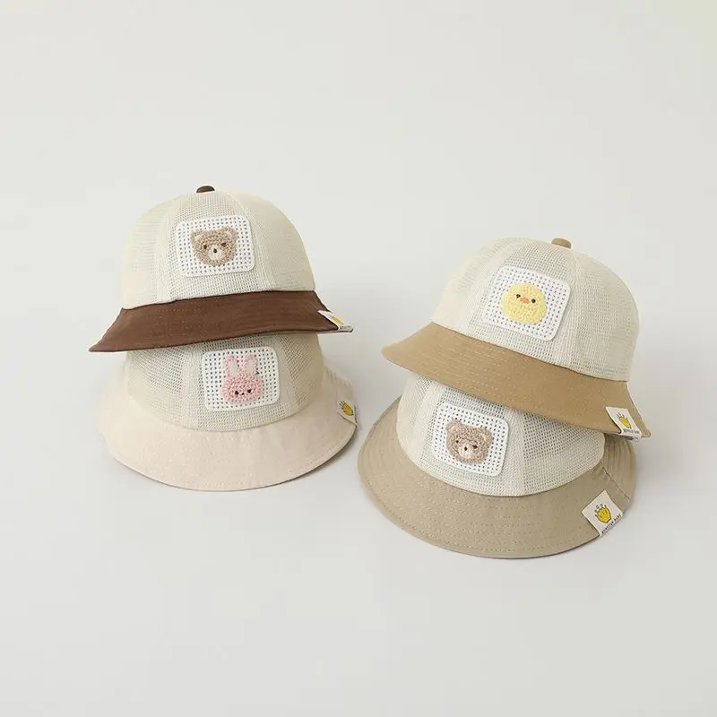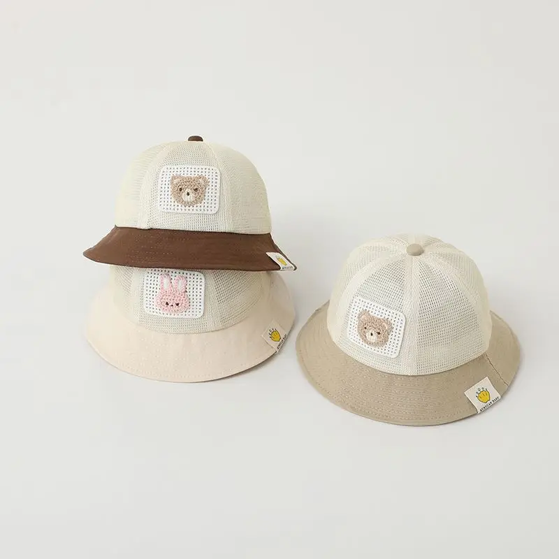 Летняя сетчатая детская шляпа-ведро, милый медведь, Детская шляпа для мальчиков, уличный солнцезащитный крем, козырек для малышей, шляпа рыбака, чепчик, Gorras
