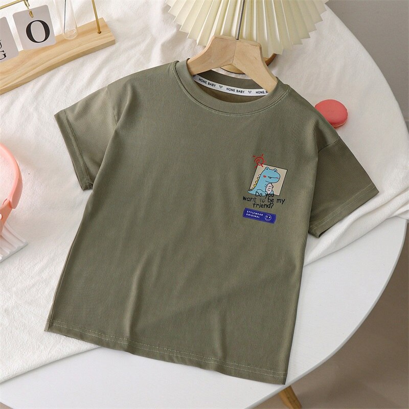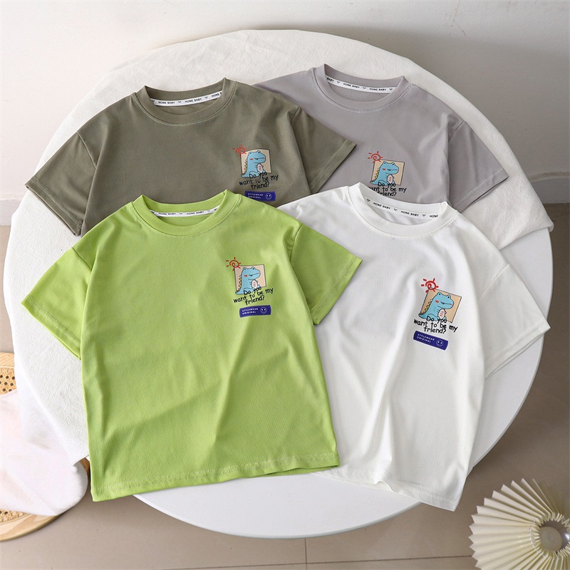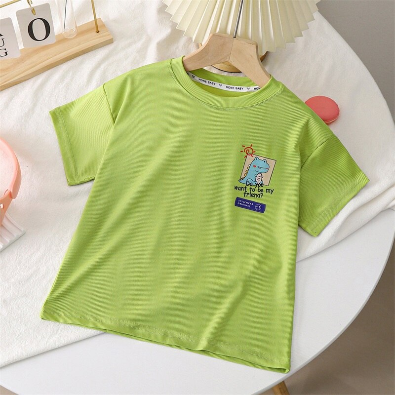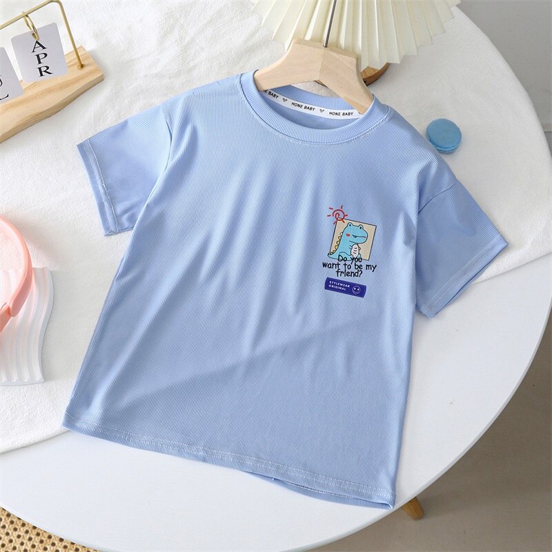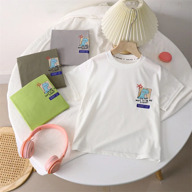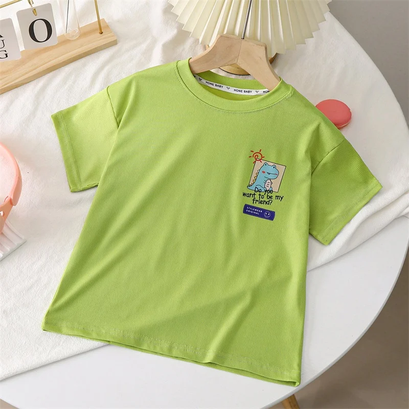Летняя шелковая футболка с коротким рукавом и круглым вырезом для маленьких девочек и мальчиков