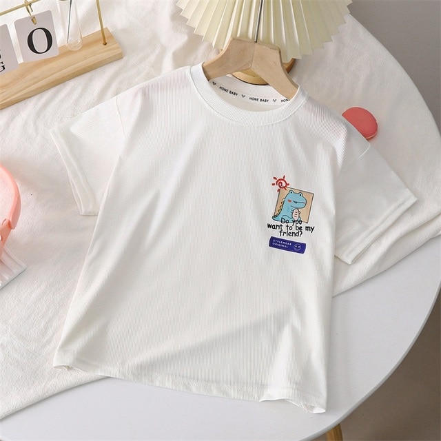 Летняя футболка из ледяного шелка для маленьких девочек и мальчиков, детские топы с короткими рукавами и круглым вырезом, футболки, одежда для новорожденных малышей