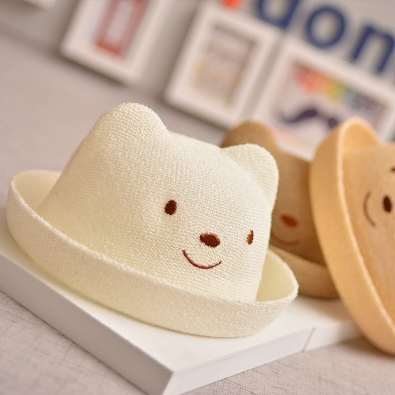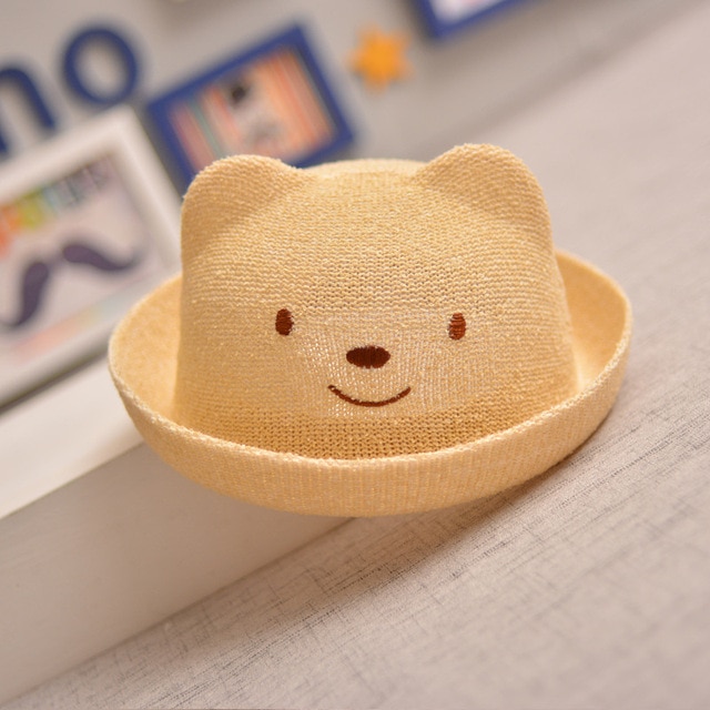 Летняя соломенная шляпа для маленьких девочек, шляпа от солнца с милым медведем и ушами, пляжная шляпа с солнцезащитным козырьком и шнуровкой, уличная пляжная шляпа с защитой от УФ-лучей, детские шляпы