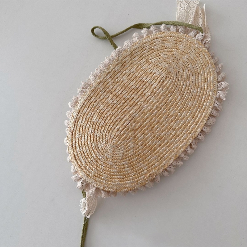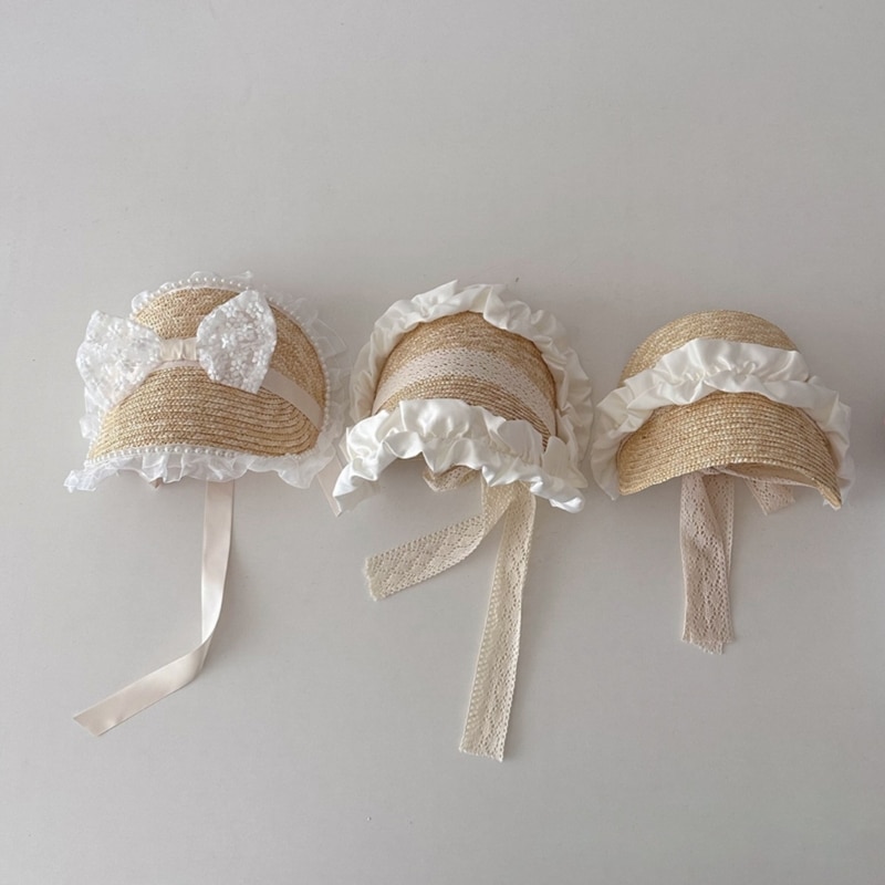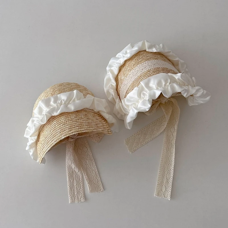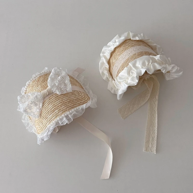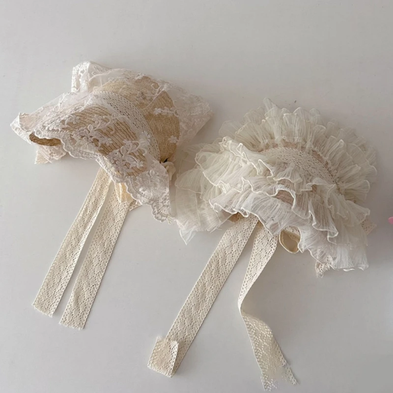 Летняя соломенная шляпа от солнца для маленьких девочек в Французском Стиле Лолита, кружевная шляпа для девочек, модная винтажная детская пляжная шапка для улицы