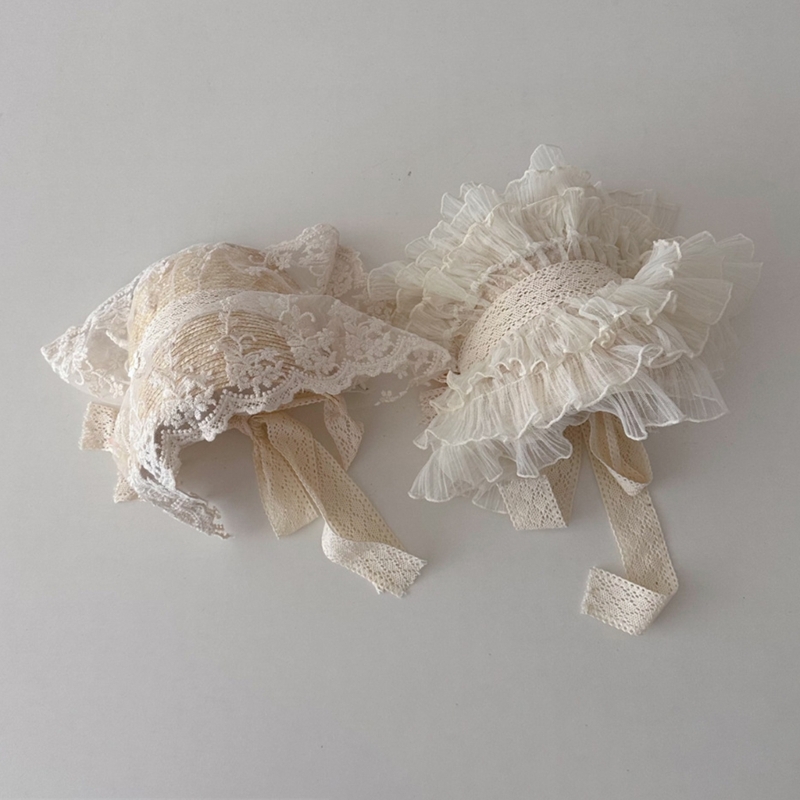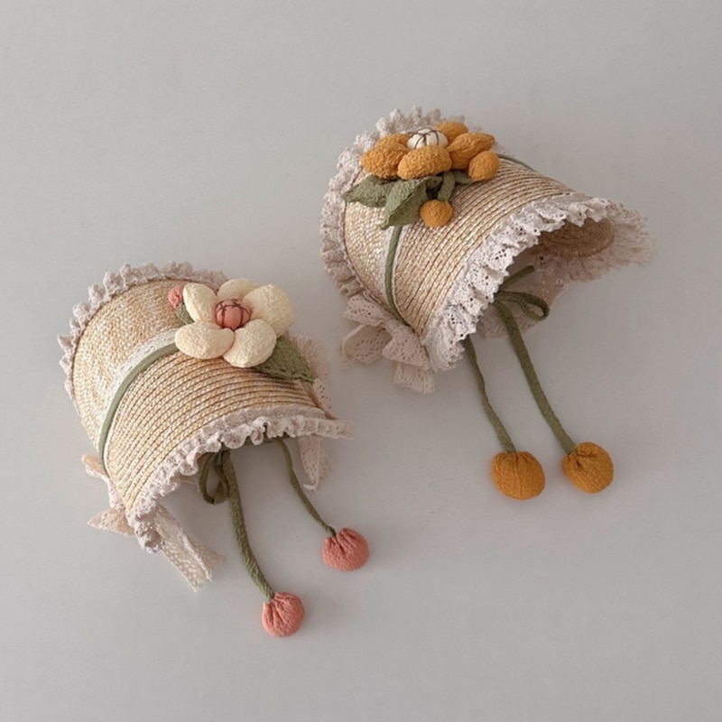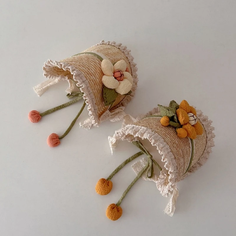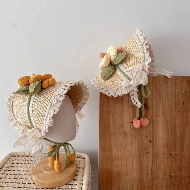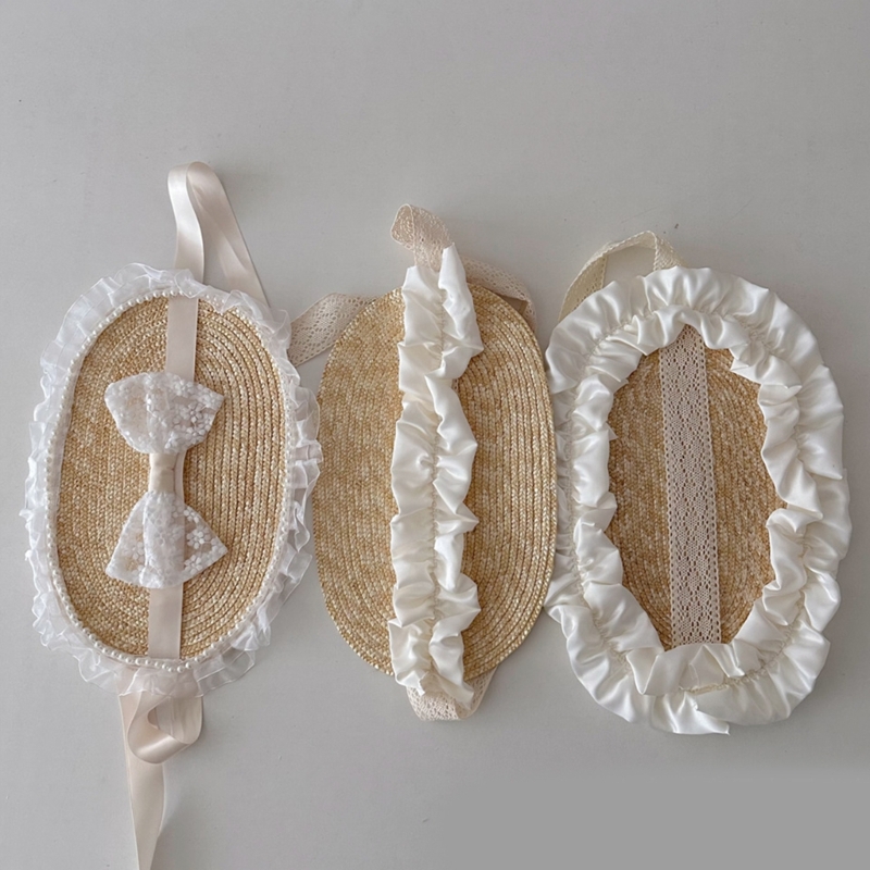 Летняя соломенная шляпа от солнца для маленьких девочек в Французском Стиле Лолита, кружевная шляпа для девочек, модная винтажная детская пляжная шапка для улицы