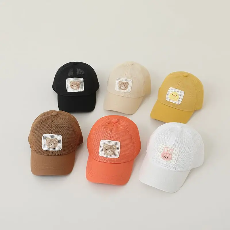 Летняя сетчатая дышащая детская бейсболка для маленьких мальчиков и девочек, мультяшный медведь, шляпа от солнца, уличная солнцезащитная Кепка, козырек для малышей