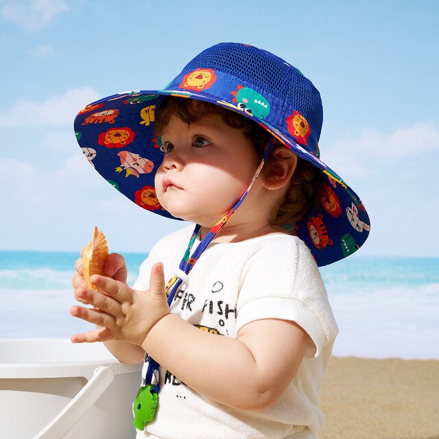 Летняя женская шляпа с регулируемым ремешком с мультяшным принтом, Детская Солнцезащитная шляпа, пляжные уличные шляпы для мальчиков и девочек