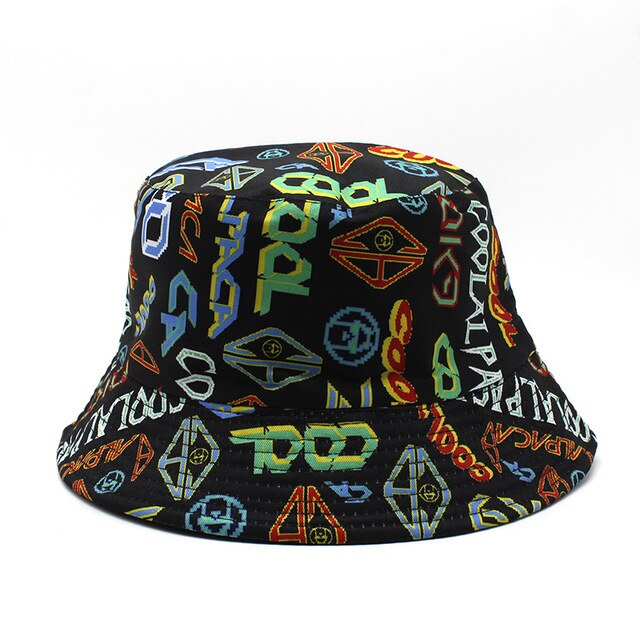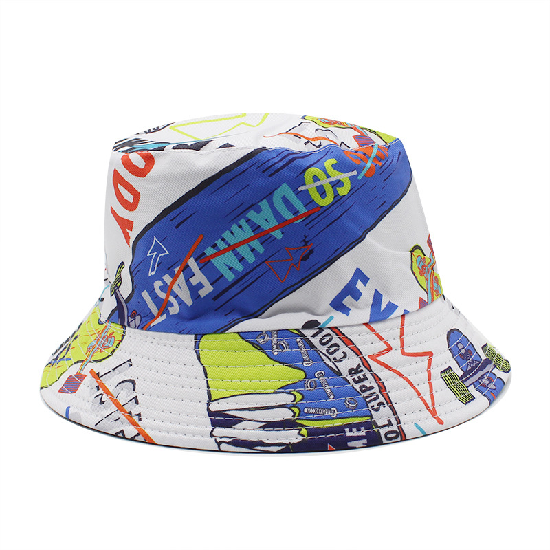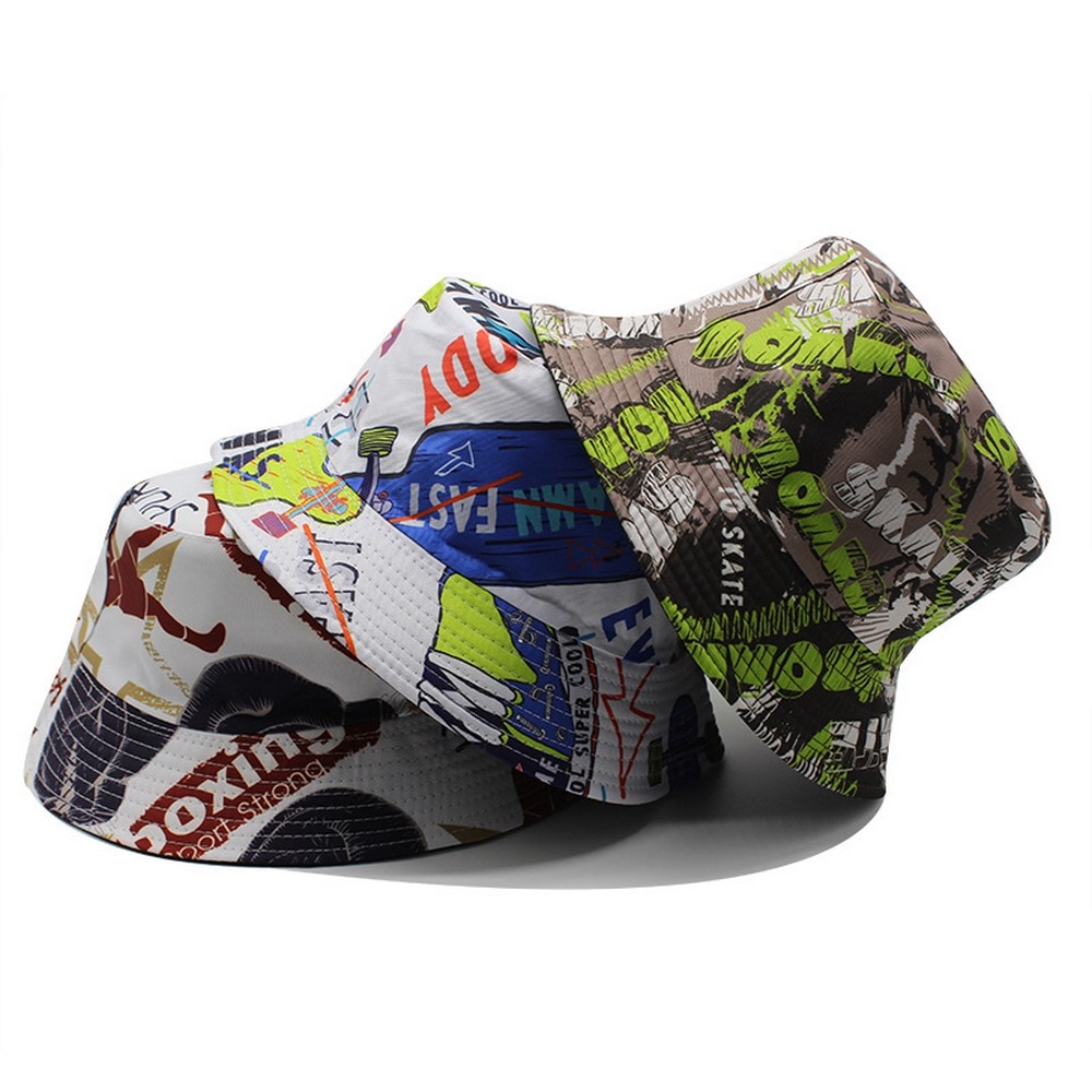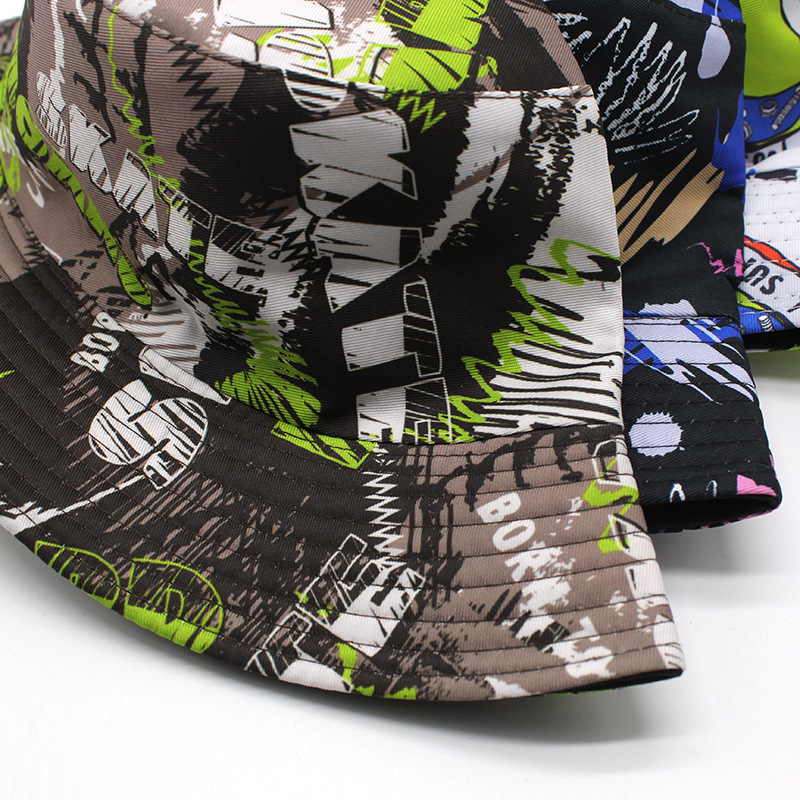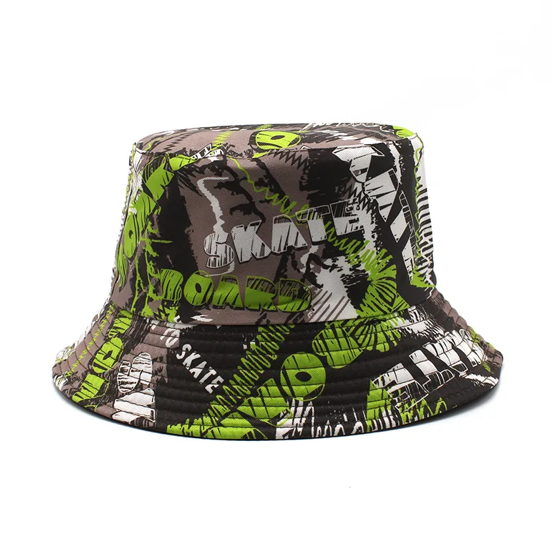 Летняя женская шляпка-ведро с изображением граффити, хлопковые шляпки 56-58 см, плоские пляжные стильные принты с кокосом, новинка 2023 YF0162