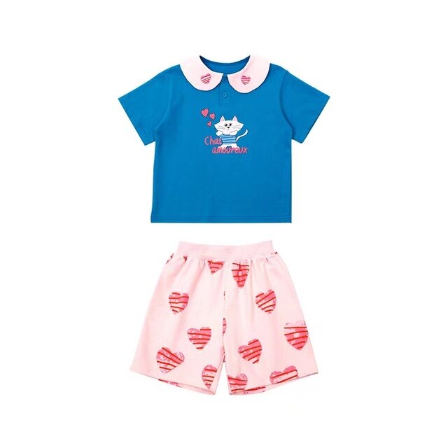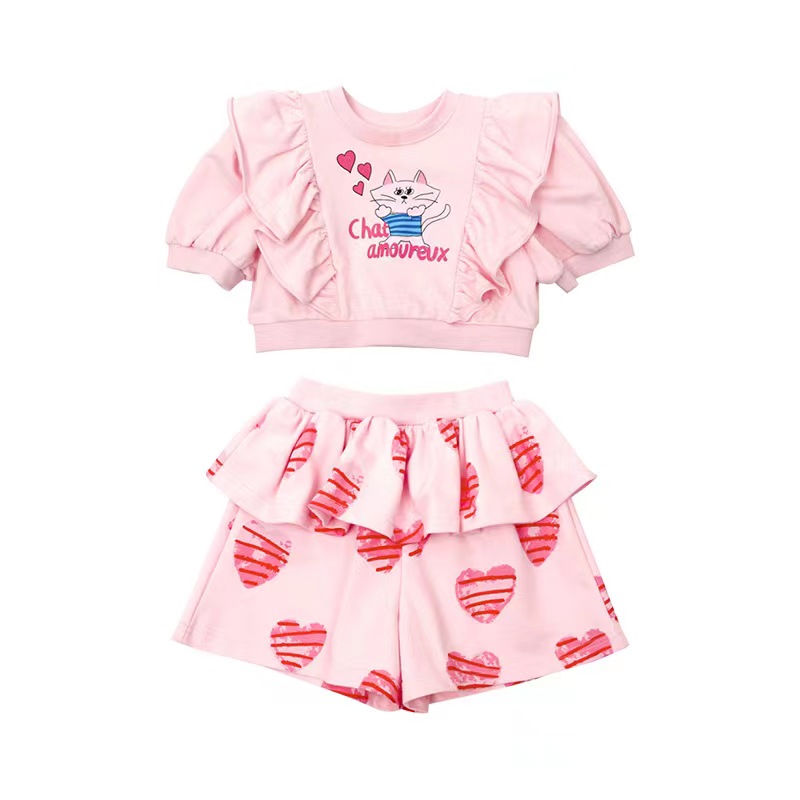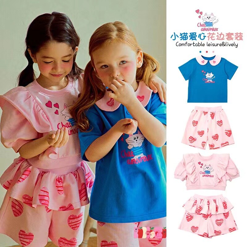 Лето 2023, Детский комплект, футболка и шорты для девочек, милый комплект