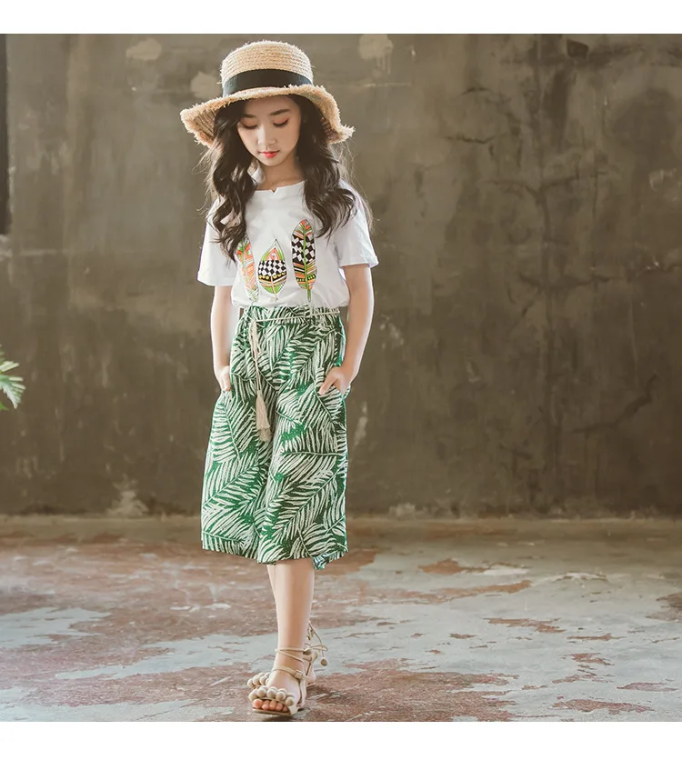 Лето 2023, комплекты одежды для маленьких девочек, наряды, детская одежда с коротким рукавом + брюки, комплект детской одежды