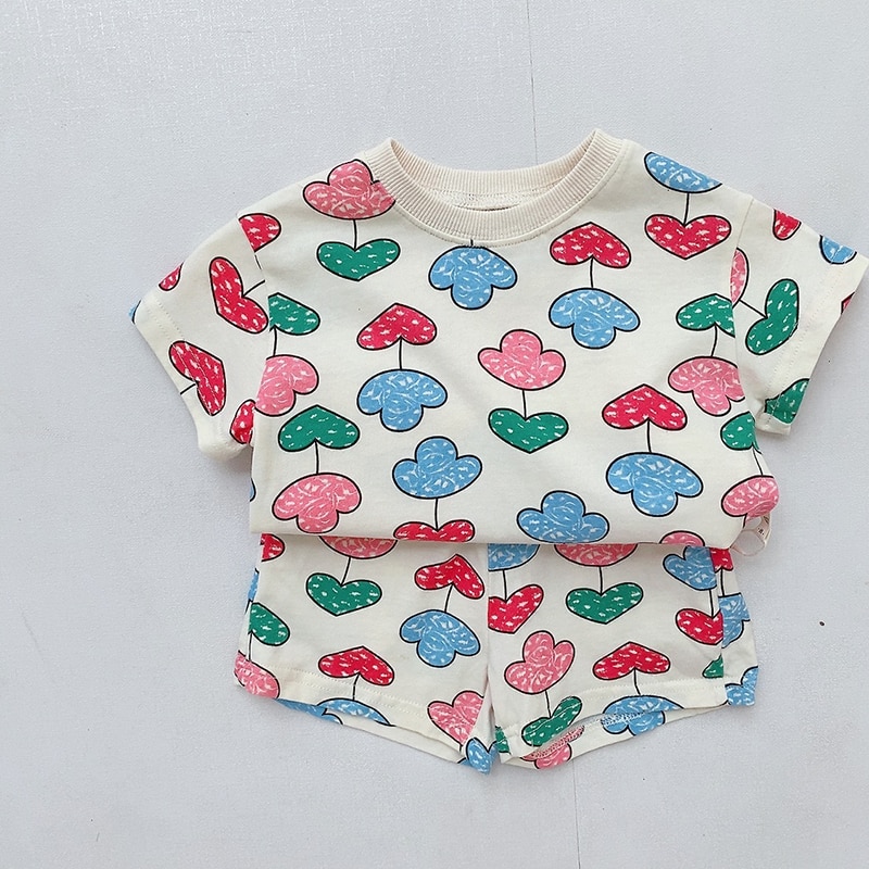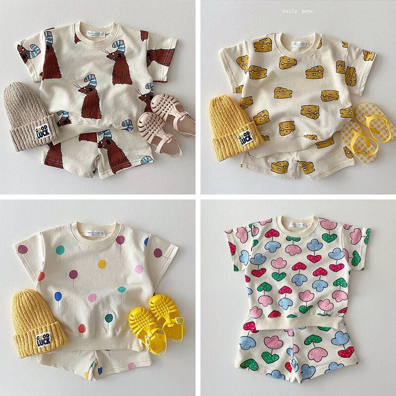 2023 летние комплекты одежды для маленьких мальчиков и девочек Детский костюм Детский принт с короткими рукавами Шорты из чистого хлопка Костюмы Одежда Наряд