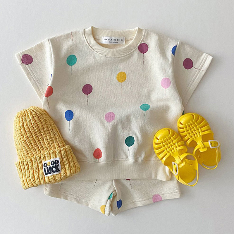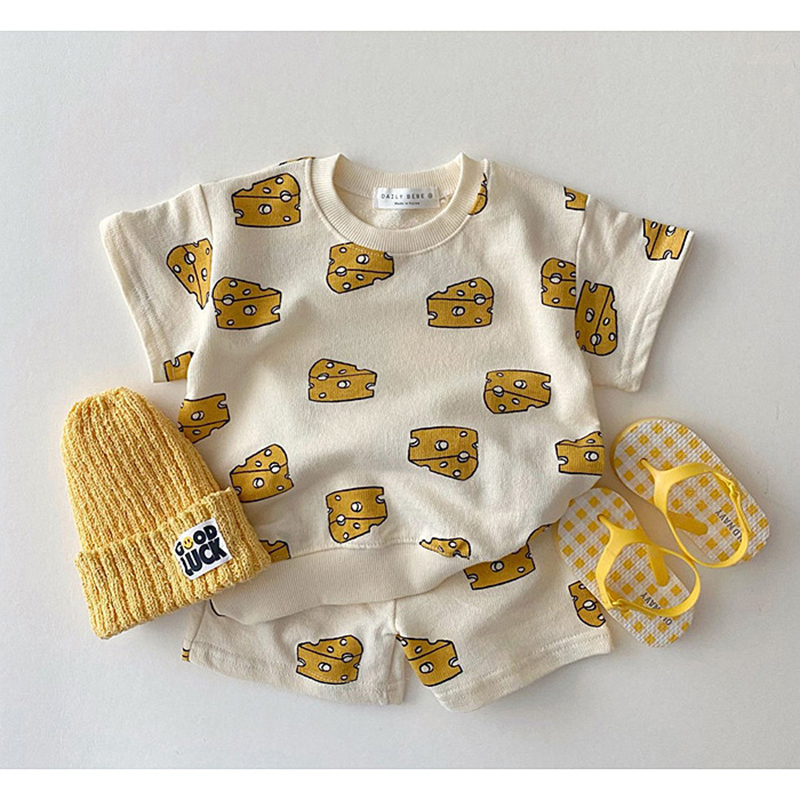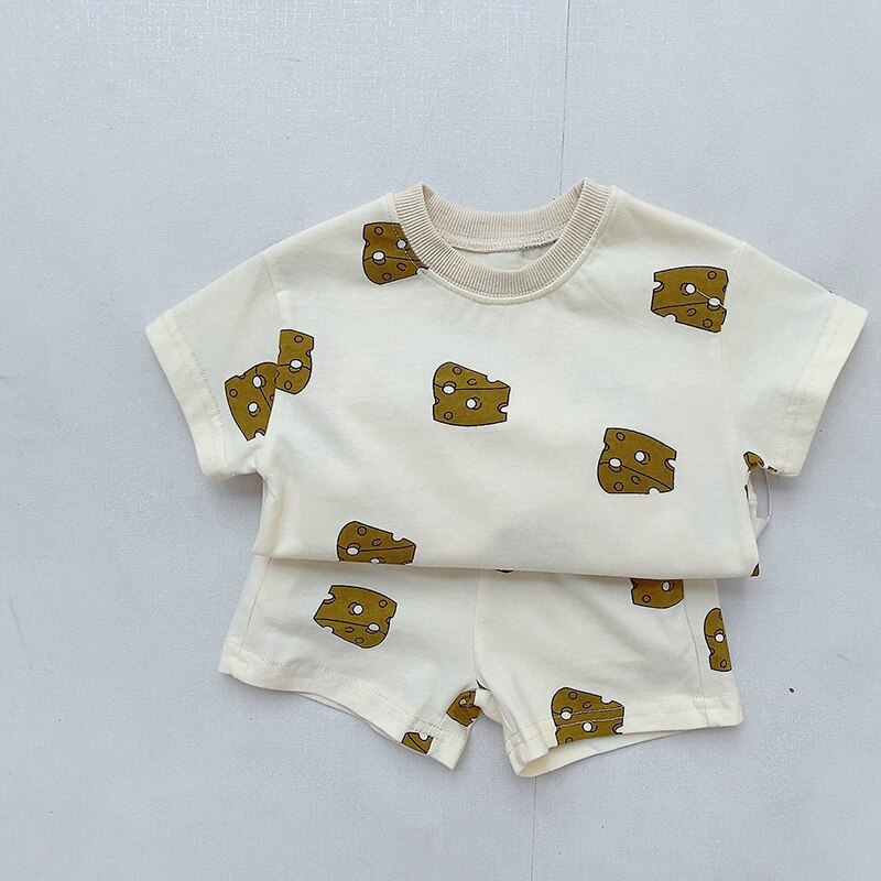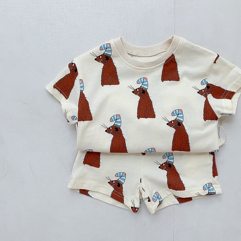 Лето 2023, комплекты одежды для маленьких мальчиков и девочек, Детский костюм, детские шорты из чистого хлопка с коротким рукавом и принтом, костюм, одежда, наряд