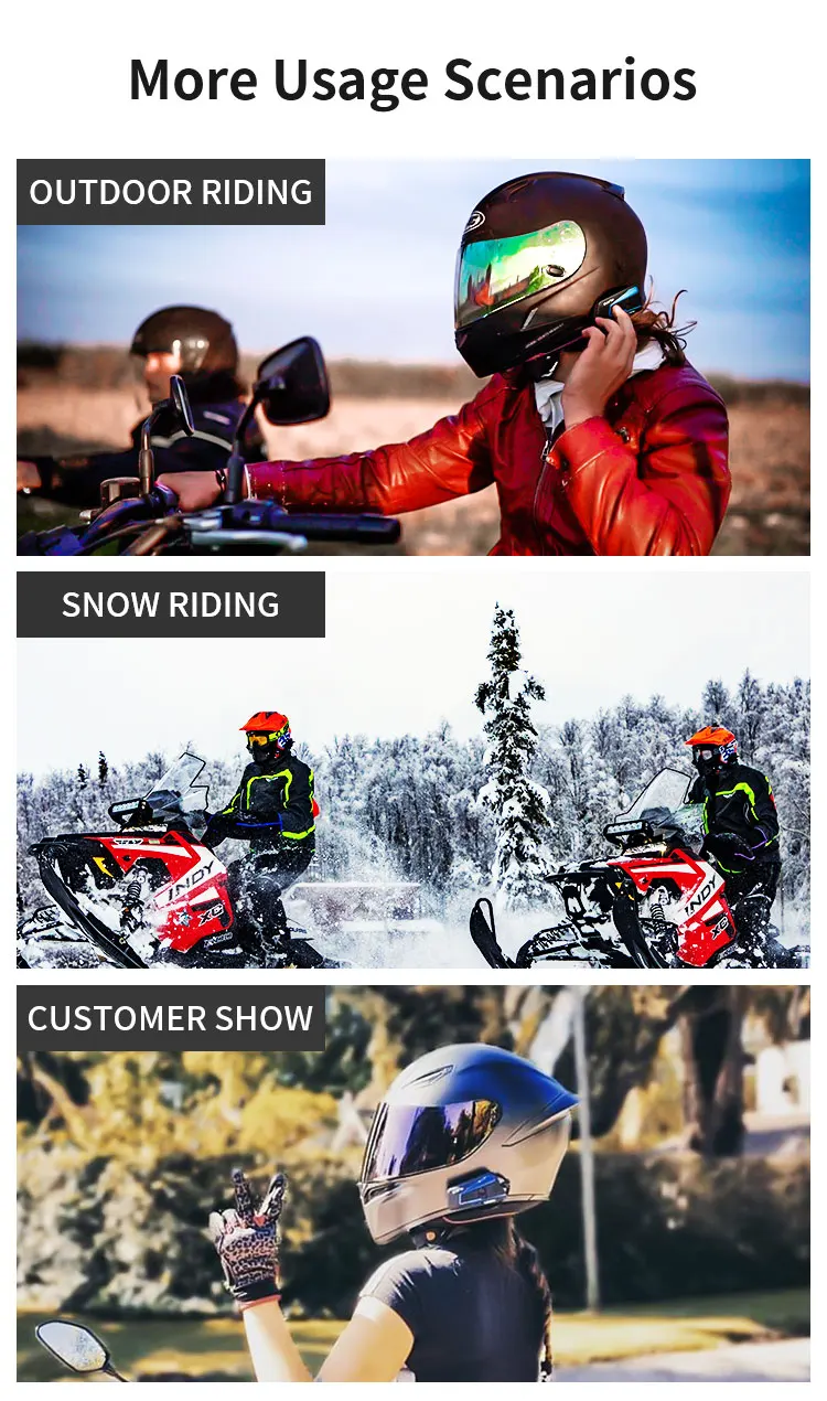 Main Features Communication in 4 riders 1600m range helmet interphone