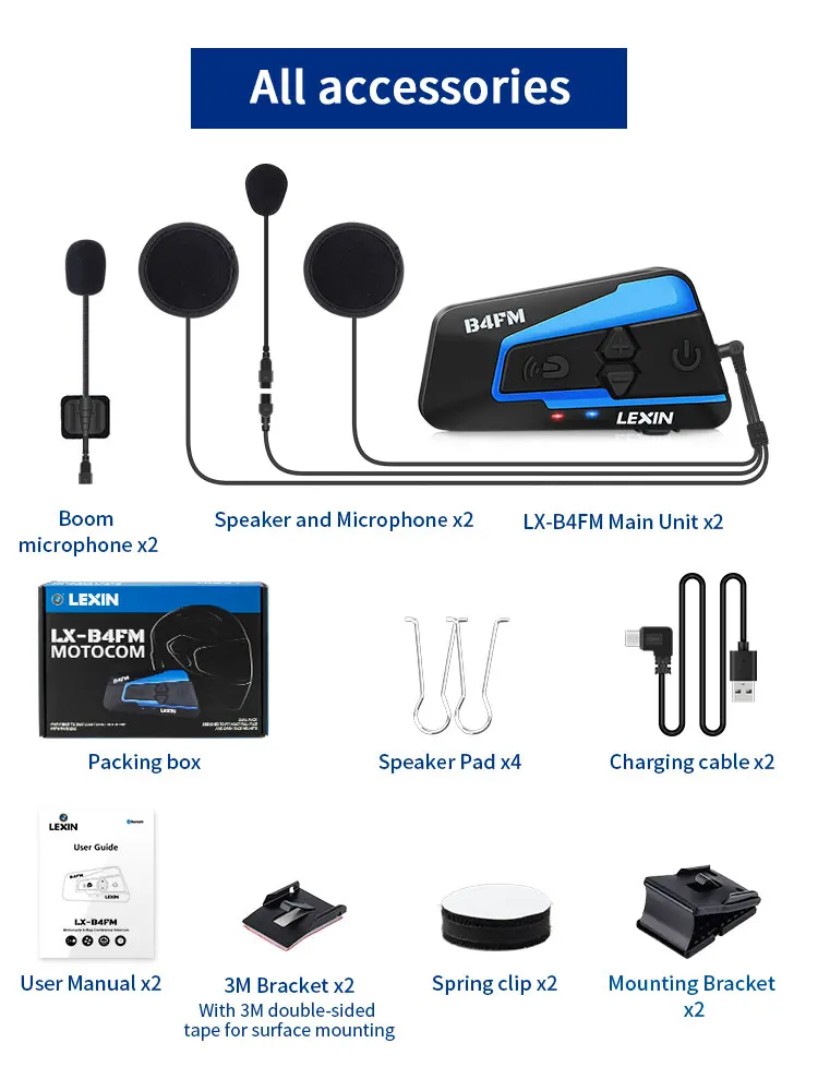 Благодарим Вас за выбор LX-B4FM мотоцикл 4-полосная Bluetooth Конференц-домофон. Это выбор, пожалуйста, оставьте сообщение, мы постараемся сделать все, чтобы 1600 того, что наши производственные мощности включают в велосипеда до полнодуплексного домофона максимальный диапазон, включает в себя Bluetooth стерео Беспроводная гарнитура для шлема (s), и предназначен для установки в наиболее открытые уход за кожей лица, модульная и анфас шлемы в стиле.