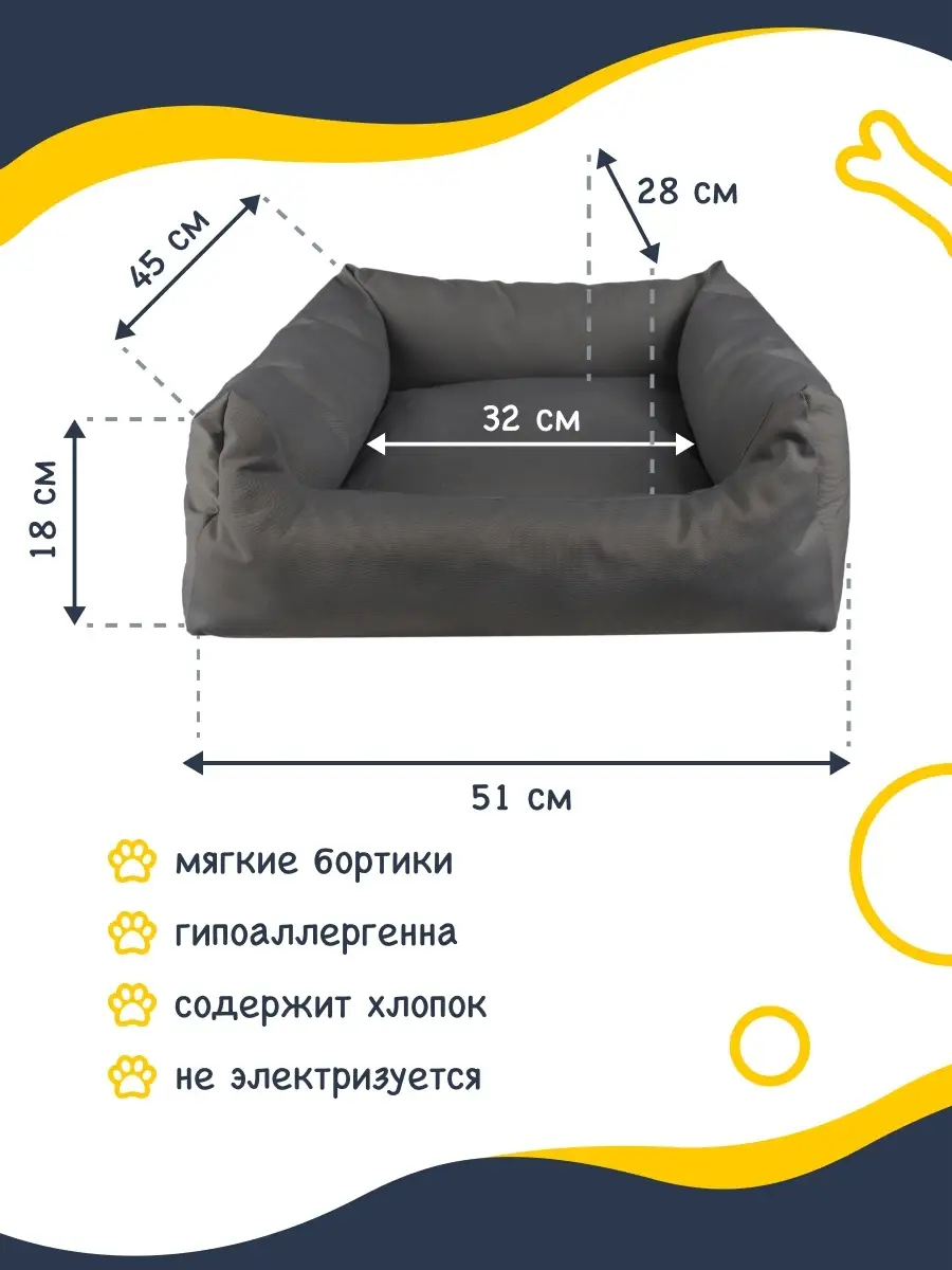 Размер лежака для животных 51*45*18 см