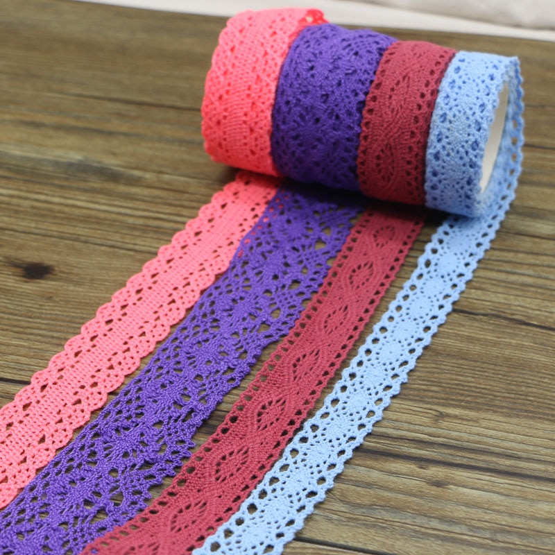 Лидер продаж, хлопковая рулон кружевной ленты 8 ярдов разных цветов, вязаная клейкая лента, стикер, декоративная ткань для рукоделия