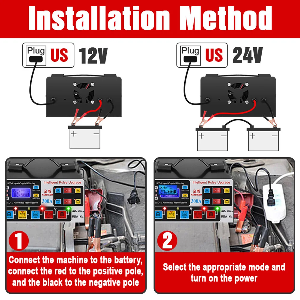 * 12V24V универсальная/Автоматическая идентификация, 6-180Ah для автомобильных и мотоциклетных аккумуляторов, включая свинцово-кислотные батареи, водные батареи, импульсный ремонт, полимерные литиевые батареи, сухие батареи, аккумуляторы без обслуживания, И т. Д. (литиевые батареи не доступны)