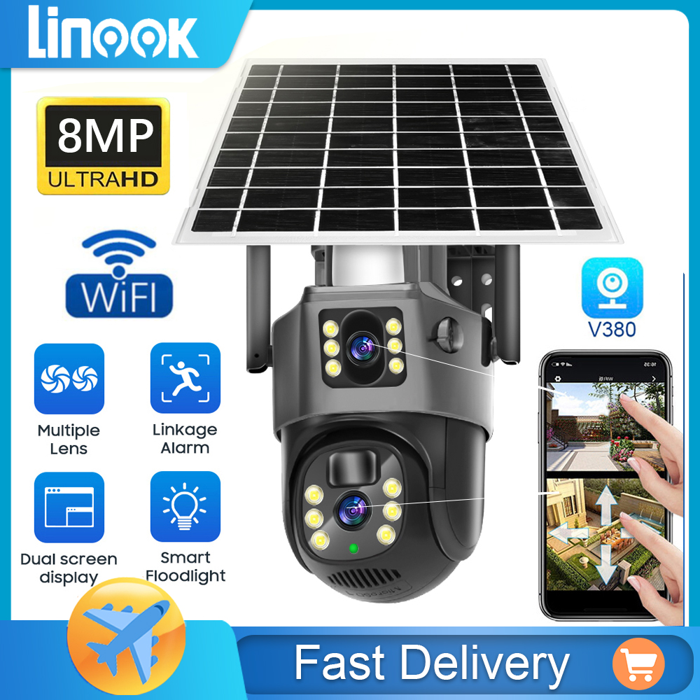 Linook V380 Pro WIFI Солнечная камера видеонаблюдения Облачная станция Открытая беспроводная 4K 8MP Полноцветная двухсторонняя камера видеонаблюдения