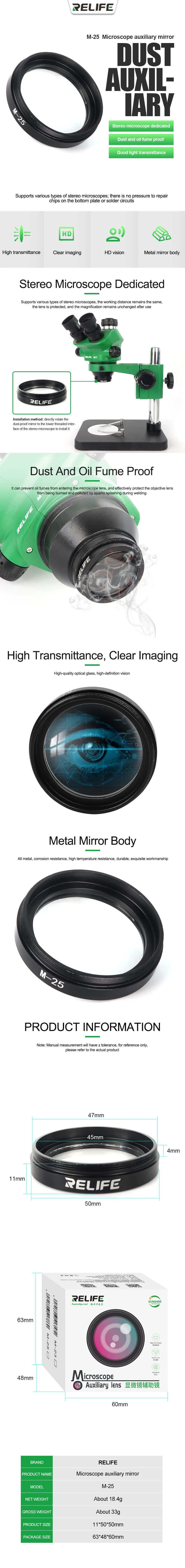 Линзы для микроскопа RELIFE, пылезащитные линзы для ремонта дымовых и защитных линз, пыленепроницаемые, маслостойкие, стеклянные линзы Iens