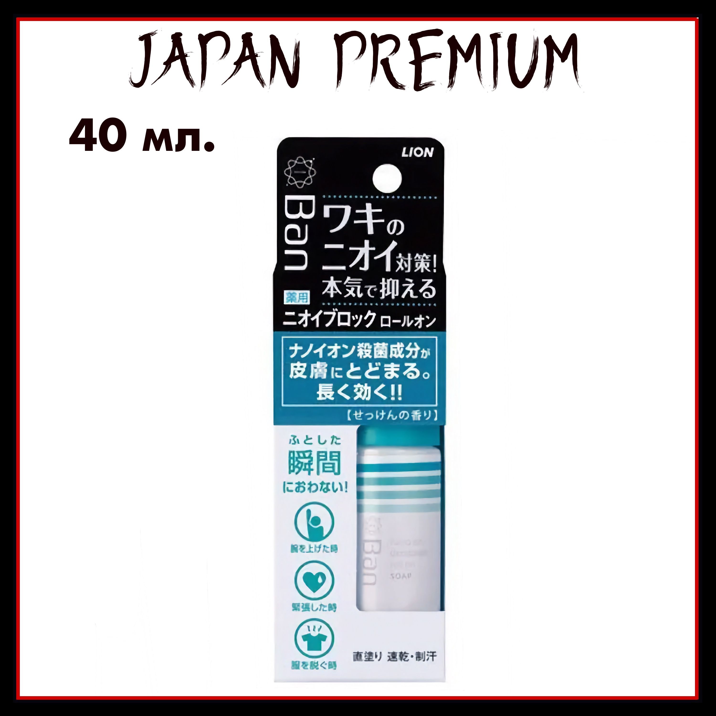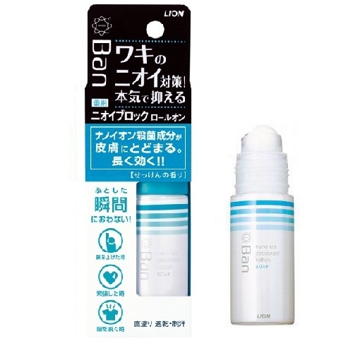 Lion Ban smell Дезодорант-антиперспирант роликовый нано-ионный блокирующий рост бактерий с ароматом цветочного мыла 40 мл
