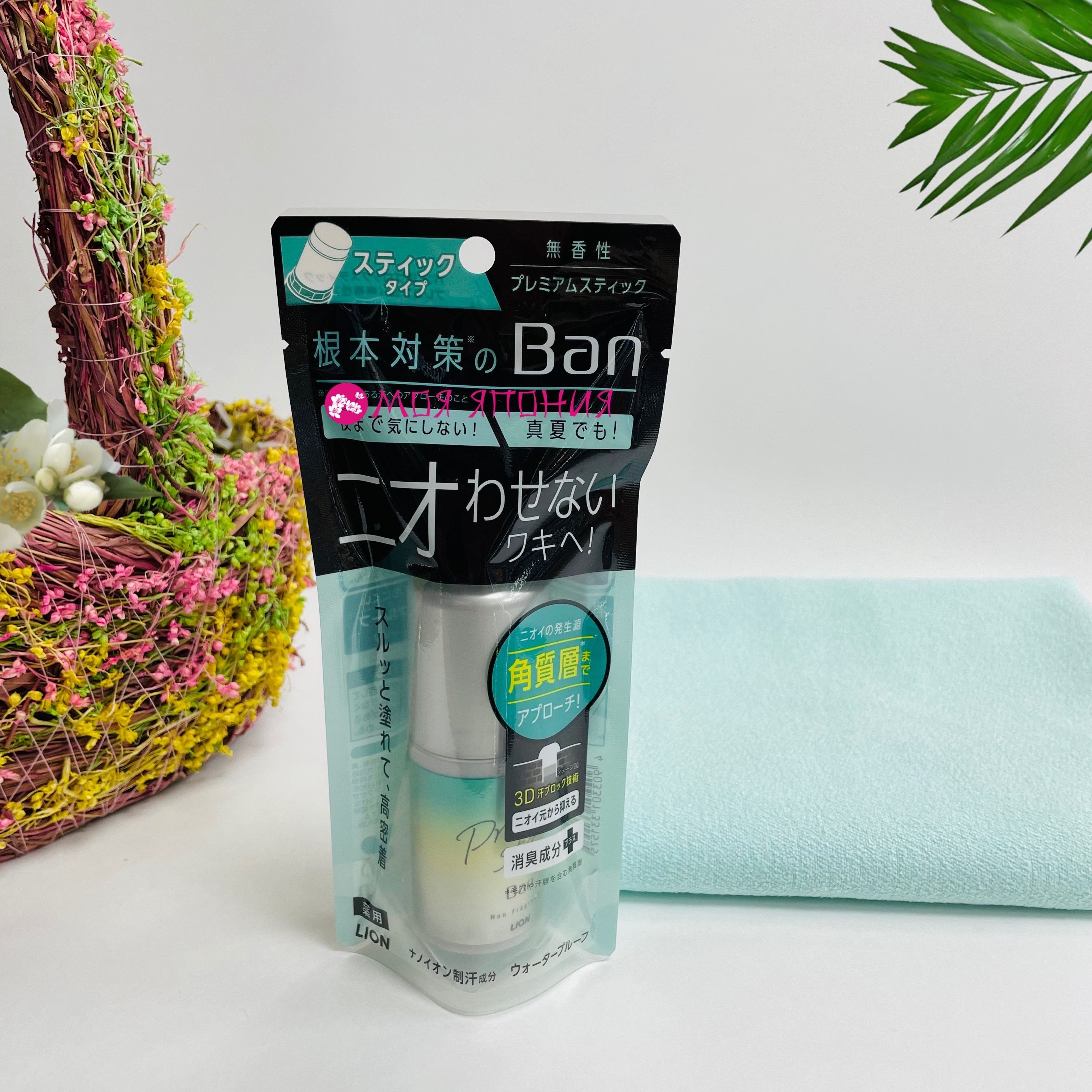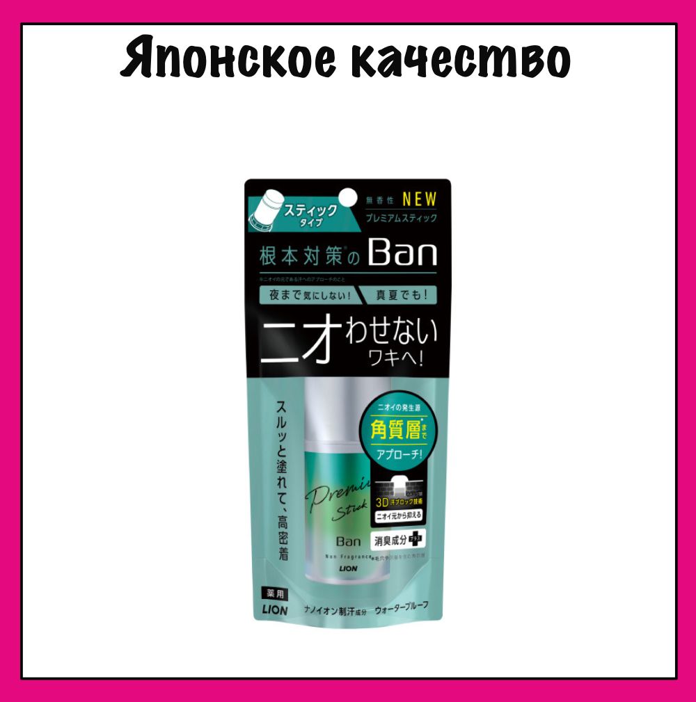 Lion Премиальный твёрдый (стик) дезодорант-антиперспирант, ионный, блокирующий потоотделение "BAN Premium Stick", без аромата, 20 мл.