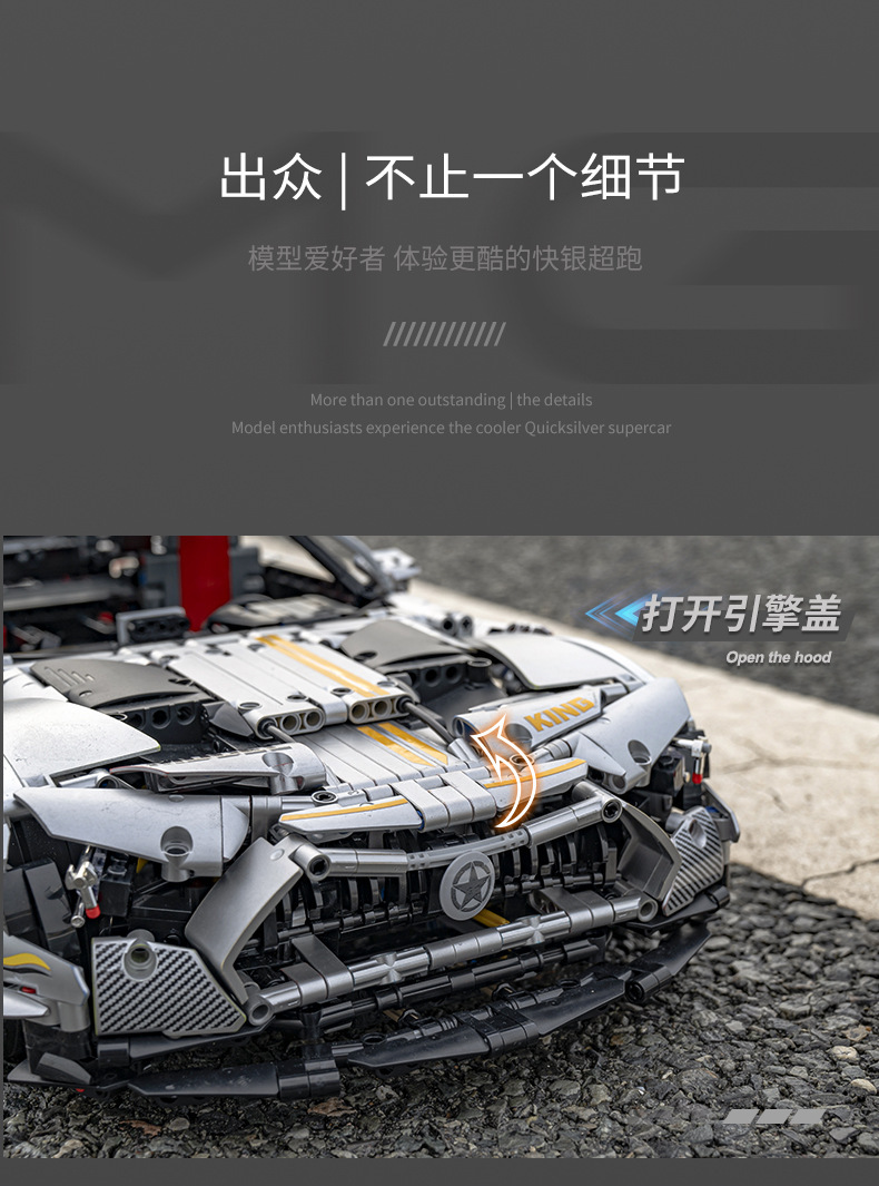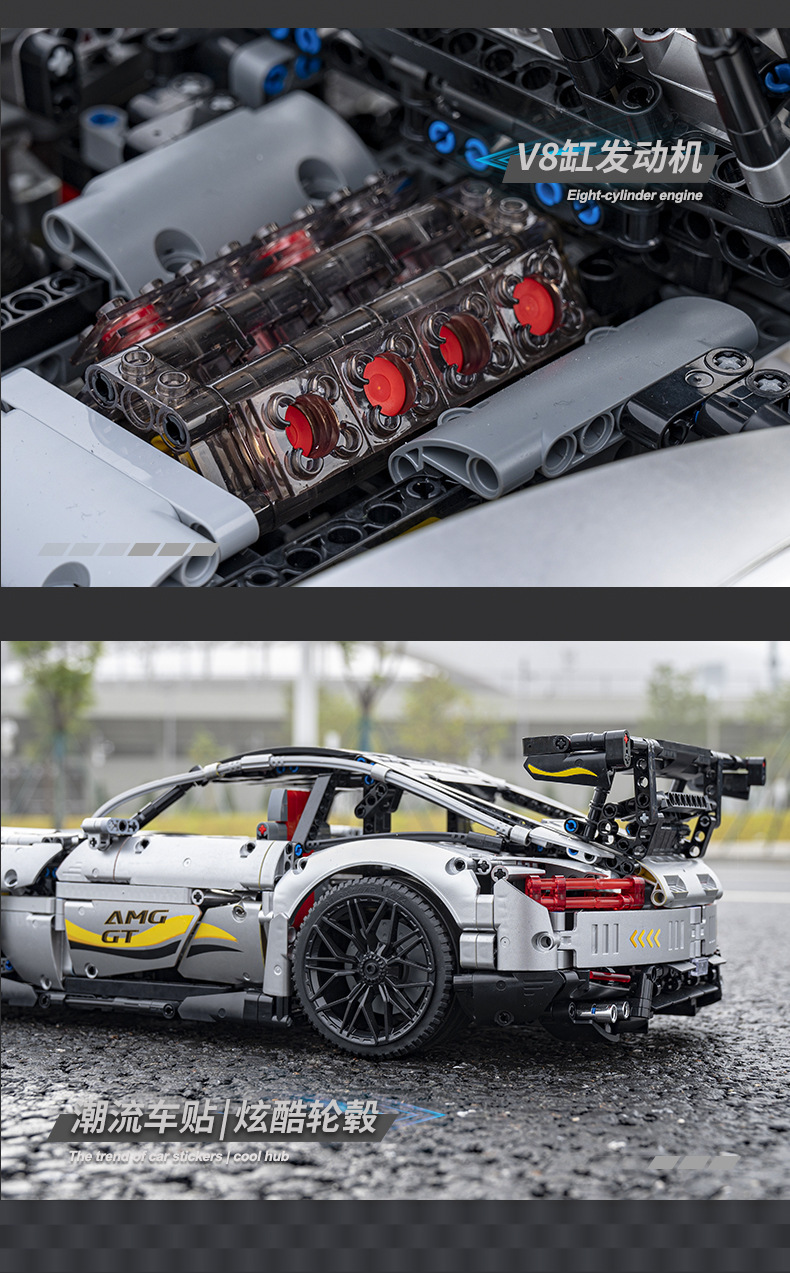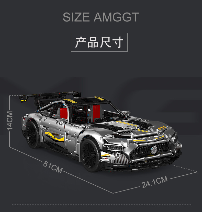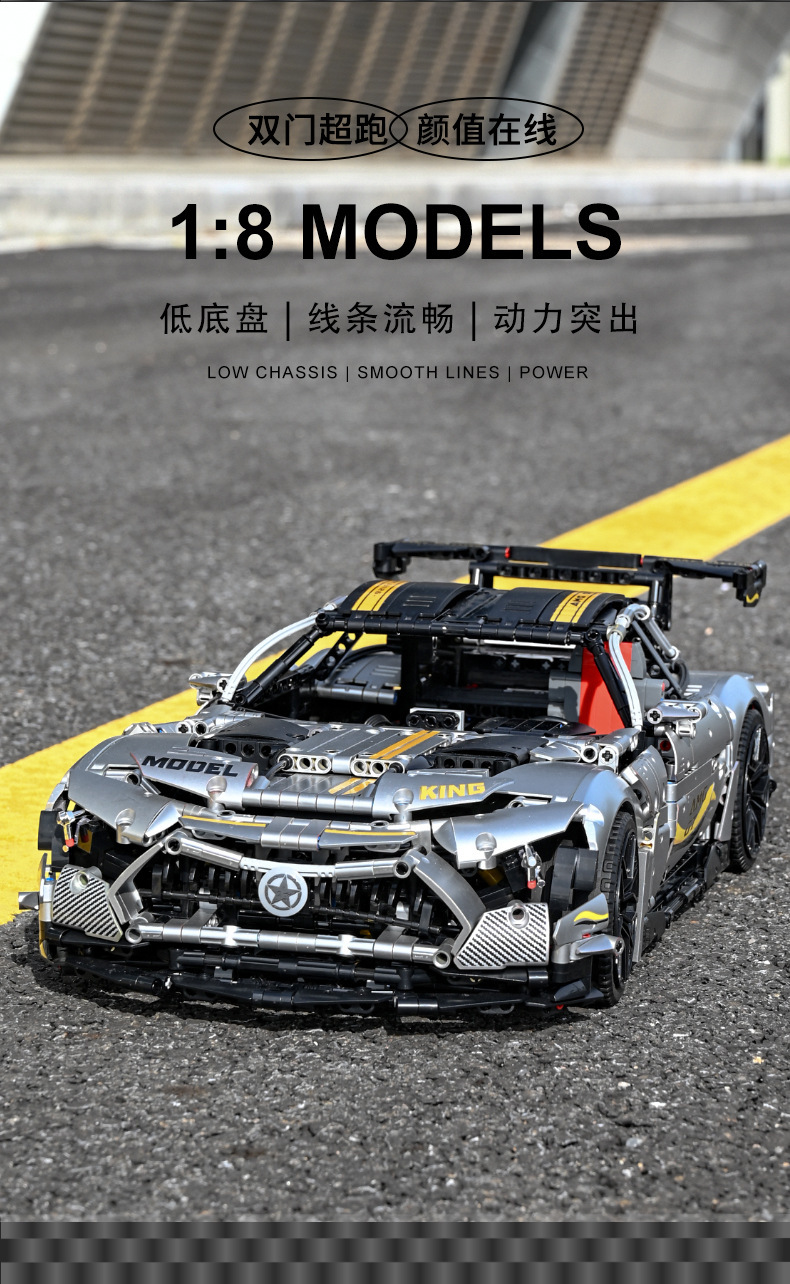 Литая модель King 13126 с приложением на дистанционном управлении Amped GT R 1:8, суперспортивный автомобиль C63, аксессуары техника, строительные блоки, кирпичи, игрушки для детей, подарки