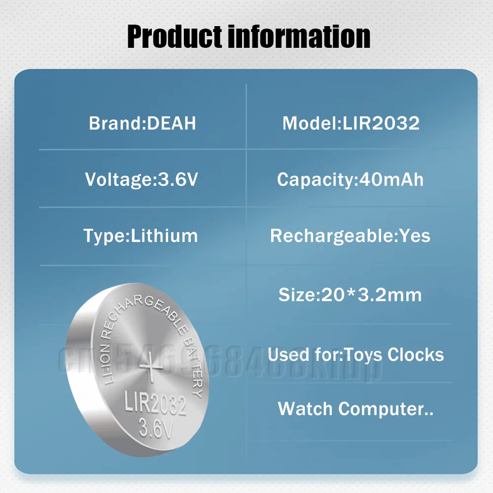 Литиевая аккумуляторная батарея LIR2032 LIR 2032 для пульта дистанционного управления, заменяет батарейки CR2032 ML2032, 2-10 шт.