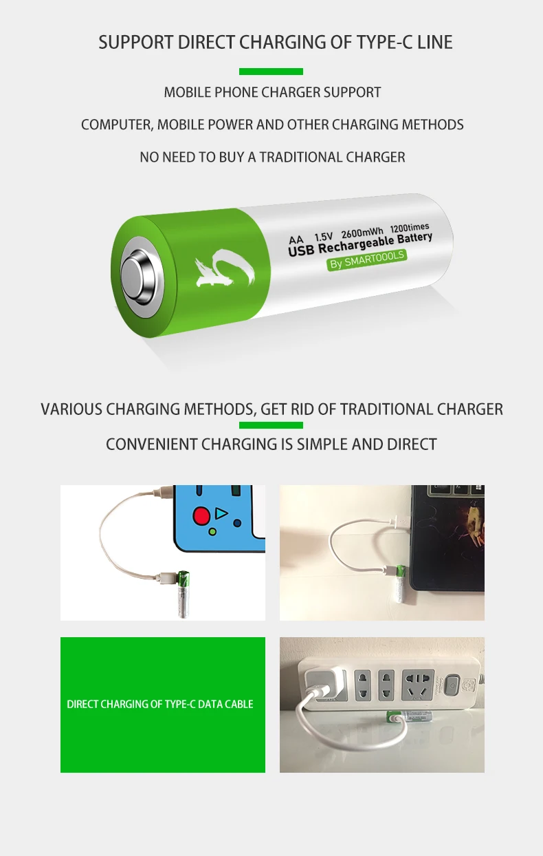 Литиевая батарея aa usb 1,5 в, перезаряжаемая батарея, используемая для дистанционного управления мышью, игрушками и т. д. батареи, аккумуляторы aa