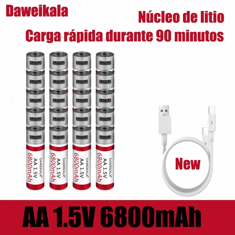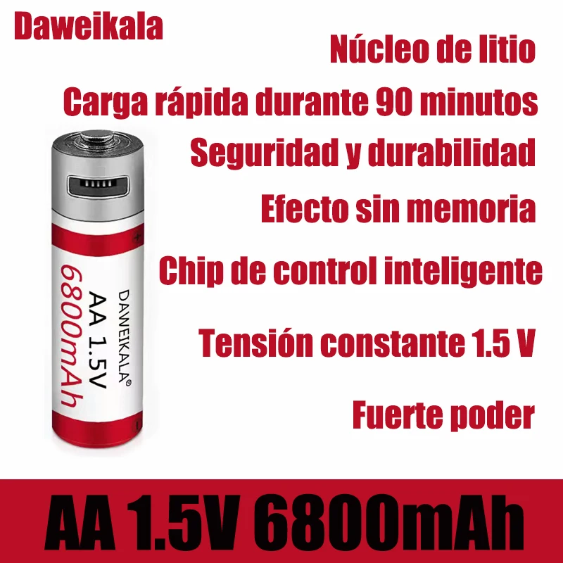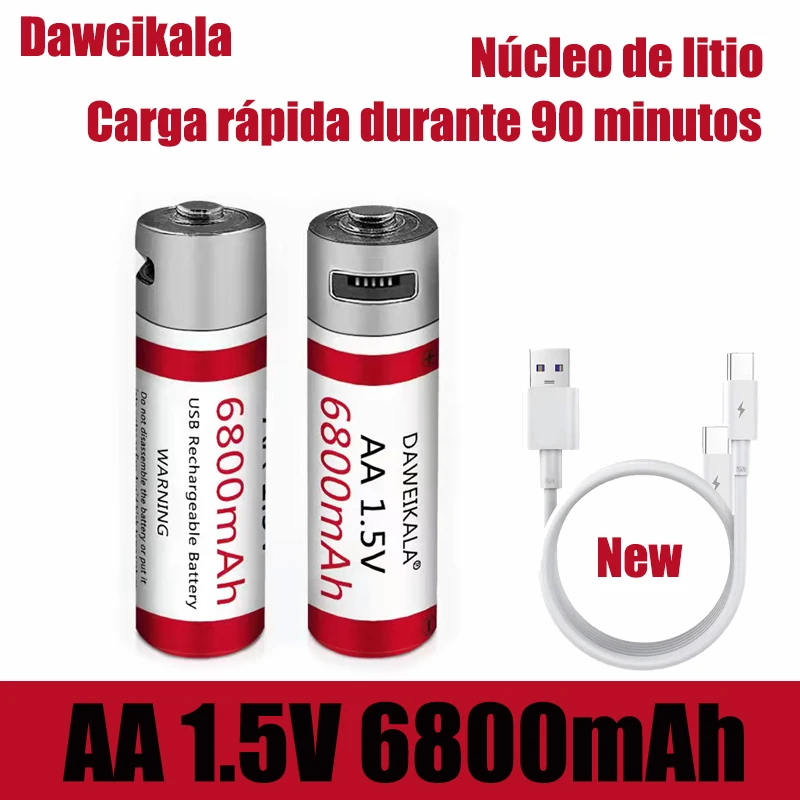 Новая Быстрая зарядка Daweikala 90 минут, литиевая батарея USB большой емкости 6800 мАч, перезаряжаемая батарея, безопасная и долговечная, мощная литиевая батарея, постоянное напряжение 1,5 В, можно заряжать 1500 раз
