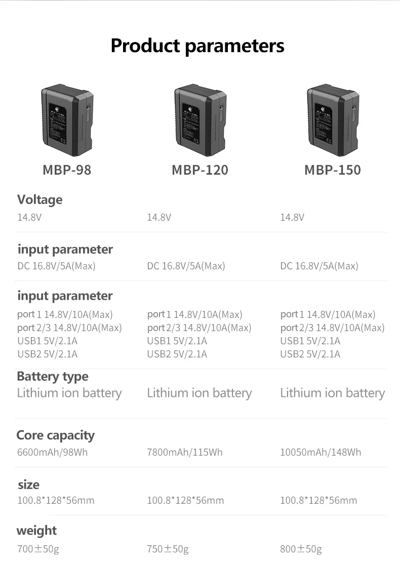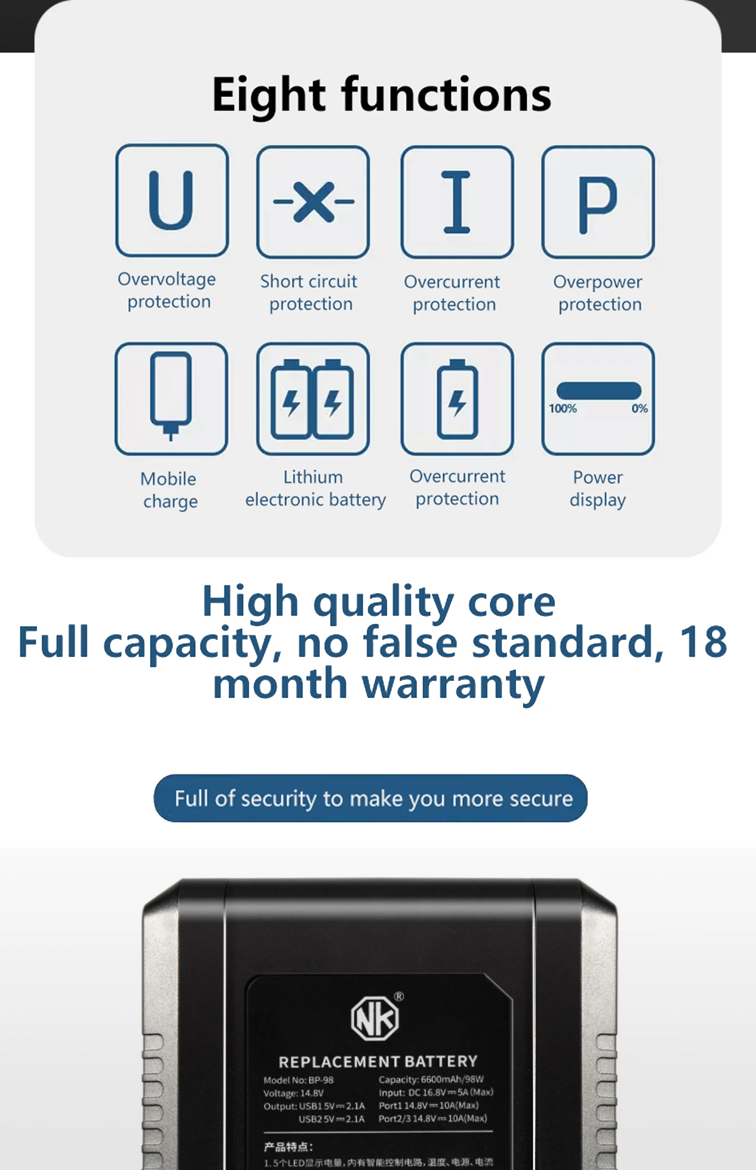 Литиевая батарея NK BP98W BP120W BP150W с V-образным креплением/V-образным креплением для карманной батареи с USB-выходом для камер смартфонов ноутбуков, Новинка