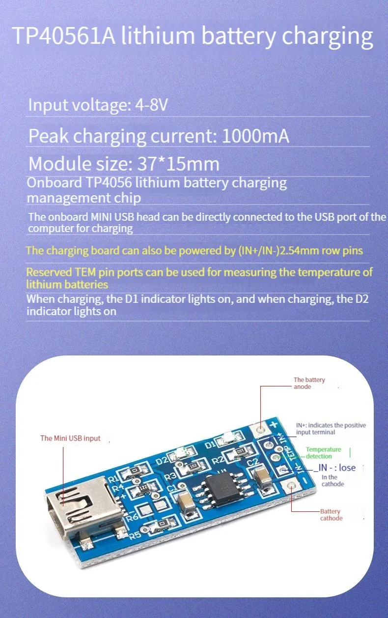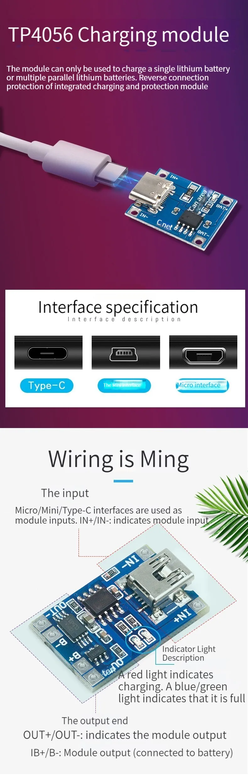 <span class="SnowProductCharacteristics_SnowProductCharacteristicsItem__titleContent__534v9">Lithium battery charging board module</span> TYPE-C USB port charge and discharge protection 2-in-1 Mini DIY