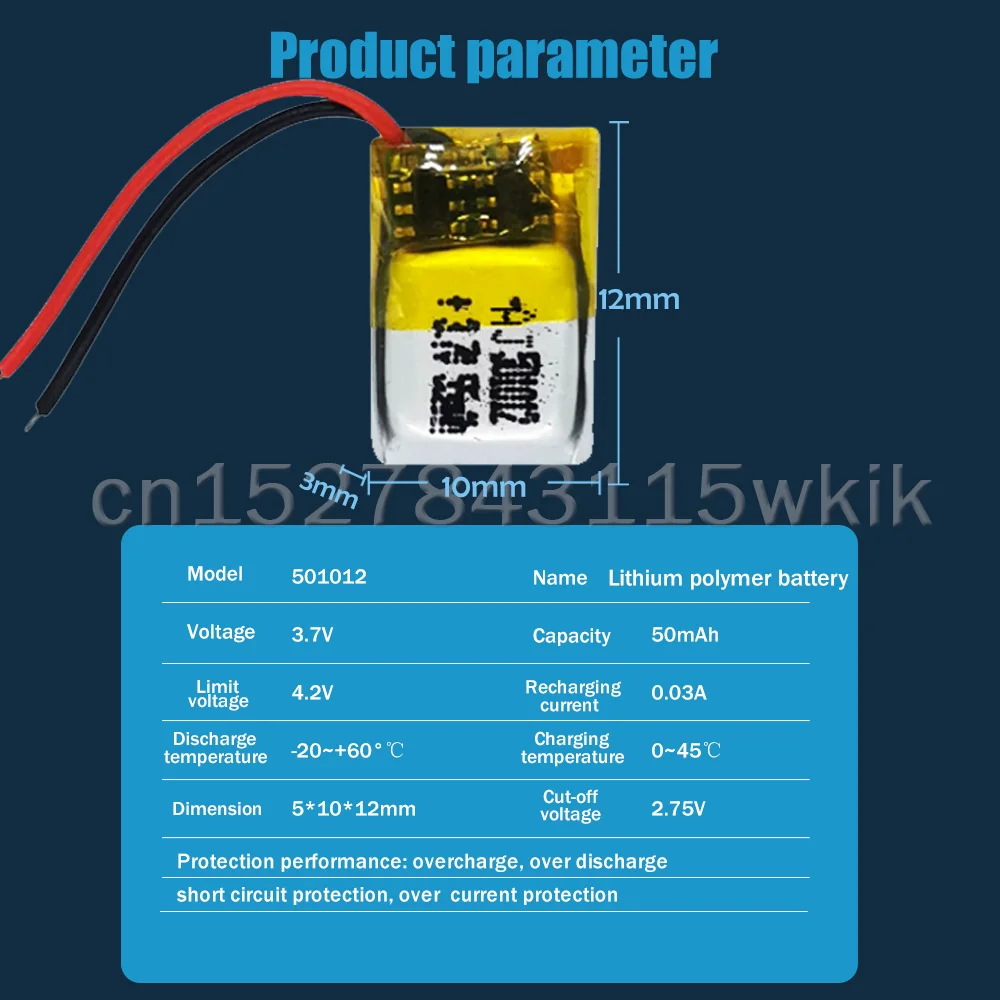 501012 3,7 В 50 мАч литий-полимерный аккумулятор для гарнитуры TWS Bluetooth i8 i9 гарнитура Smart Wear MP3 MP4 Li Ion Cell