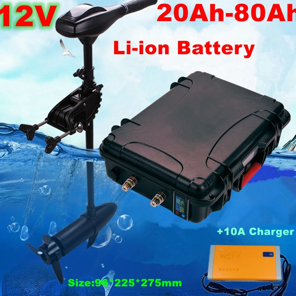 Литиевая батарея 12 В литий-ионная батарея 50AH 60AH 70AH 80AH для гребного винта моторной лодки + зарядное устройство 10A