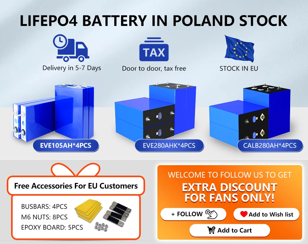 Тип батареи: литий-железо-фосфатный элемент (3,2 В 105 Ач LIFEPO4)