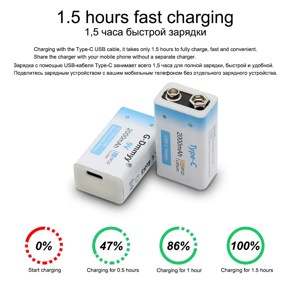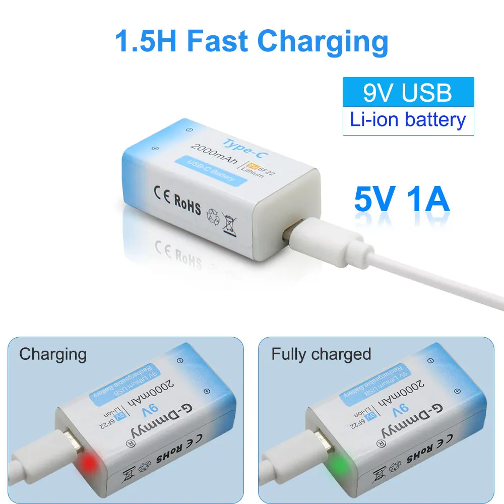 Литий-ионная аккумуляторная батарея G-Dmmyy, 2000 мАч, Тип C, USB, 9 В, 6F22, 9 В, литий-ионная литиевая батарея для радиоуправляемого вертолета, модели микрофона