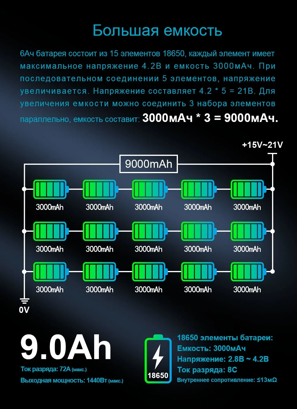 3.Использование новых аккумуляторных элементов высокой скорости разряда 8C обеспечивает более высокую выходную мощность. А срок службы аккумулятора дольше.