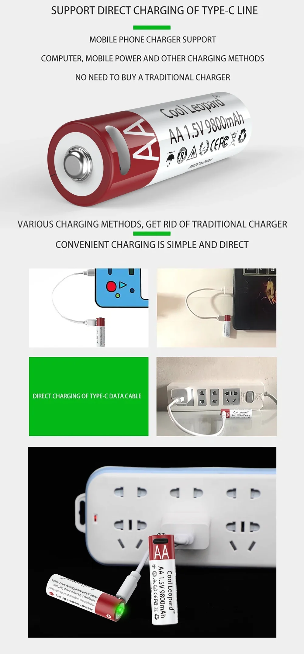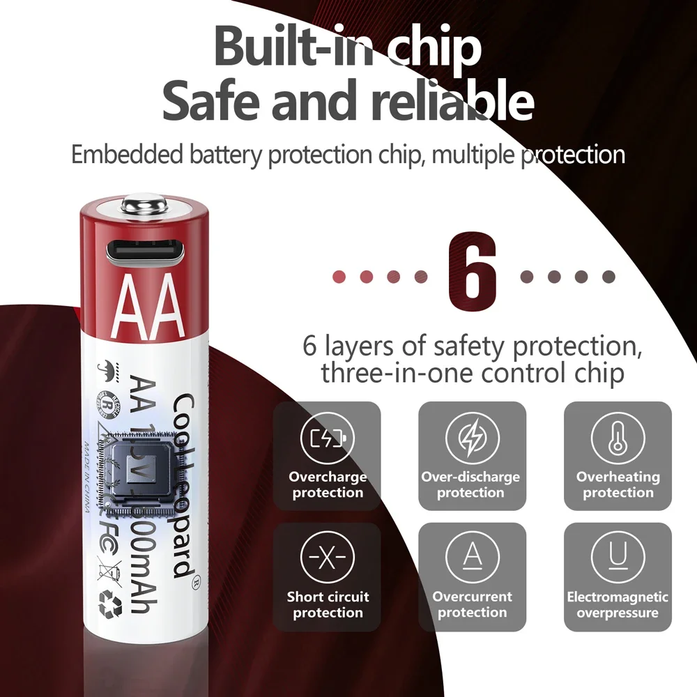 Литий-ионный аккумулятор 1,5 в AA 9800 мАч с USB перезаряжаемой литиевой батареей для часов, игрушек, MP3-плееров