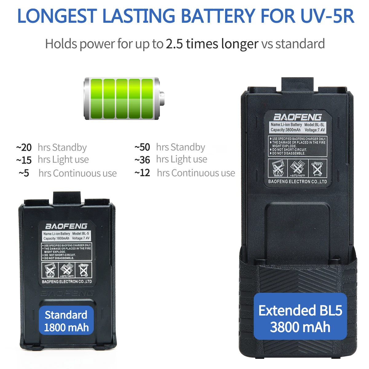 Двухдиапазонная радиостанция Baofeng UV-5R Особенности батареи:
