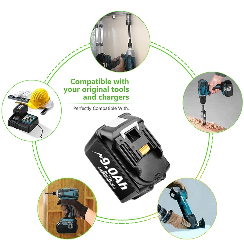 Эта ссылка для аккумулятора Makita 18V, 3,0/6,0/9.0Ah, пожалуйста, внимательно проверьте перед заказом. Зарядное устройство совместимо только с оригинальной батареей Makita и запасной батареей, которую мы продали, обратите внимание.