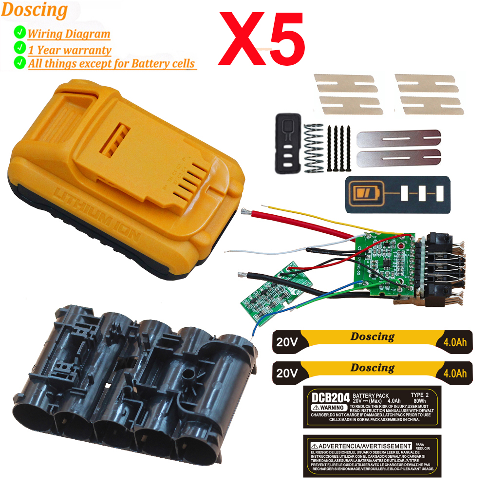 Литий-ионный аккумулятор DCB200 5*21700, пластиковая стандартная Защитная печатная плата для зарядки, корпус для DeWalt 18 в 20 в DCB203 DCB204