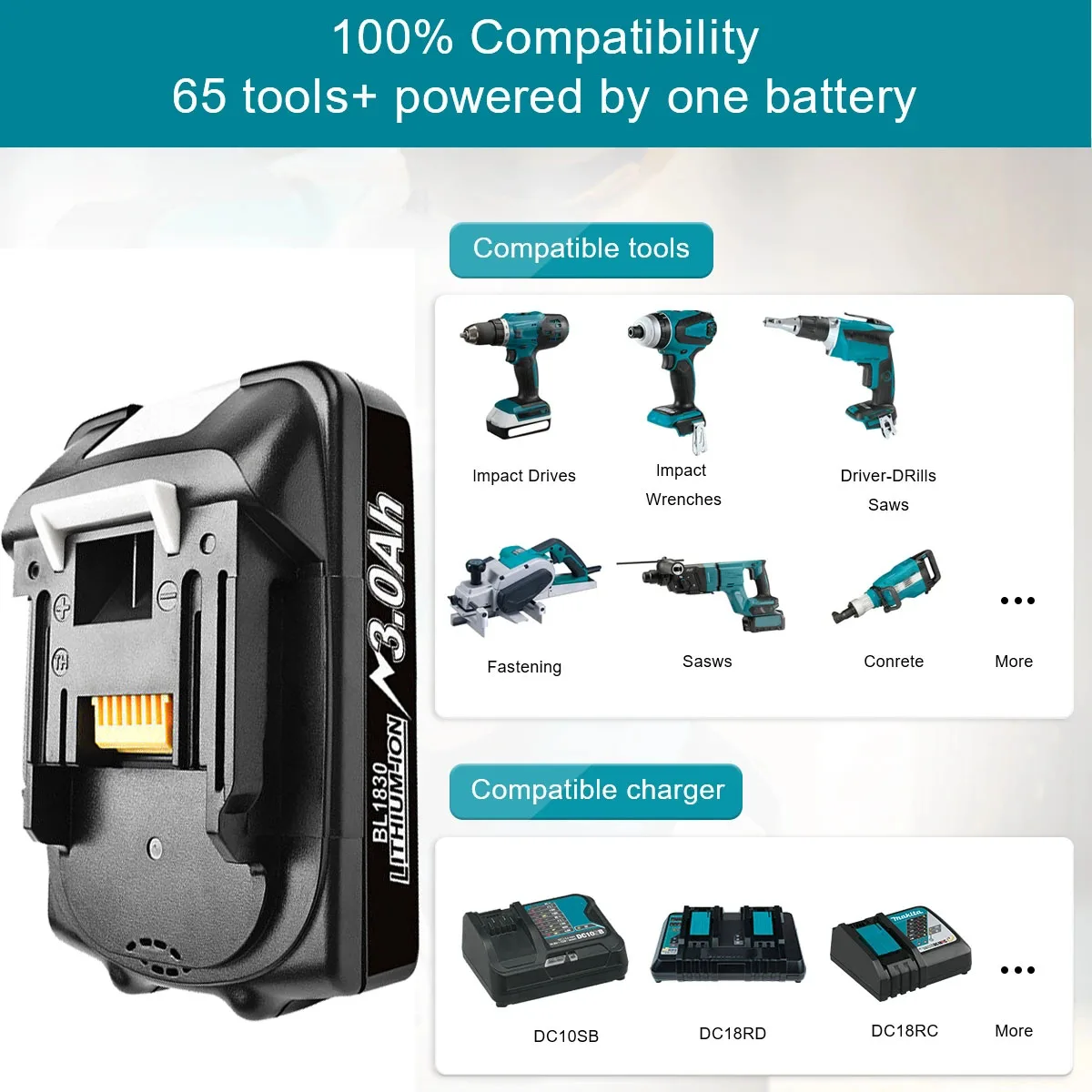 Эта Замена батареи MAKITA BL1830 совместима со следующими моделями: (Используйте «Ctrl + F»)