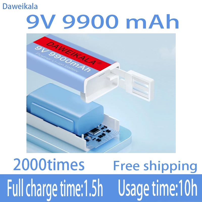Литий-ионный аккумулятор для мультиметра, микрофона, пульта ДУ, 9 В, 9900 мАч