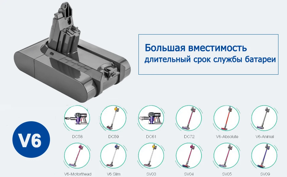 Литий-ионный аккумулятор для пылесоса Dyson V6 DC58 DC59 DC61 DC62 SV09 SV07 SV04 SV03