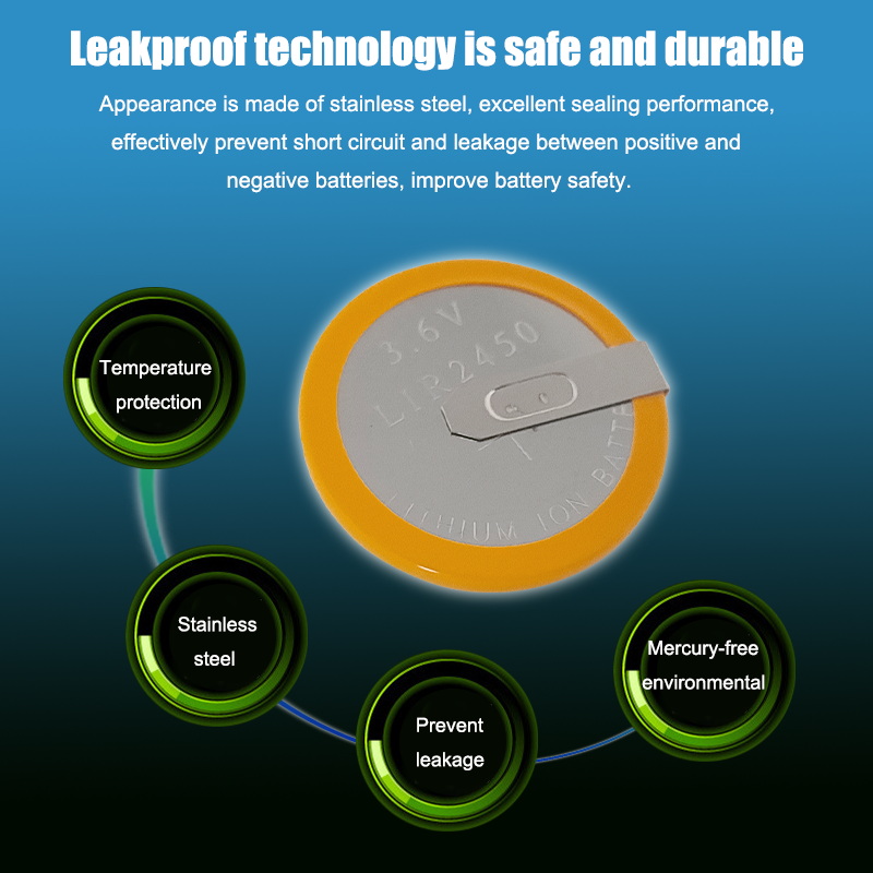 Литий-ионный кнопочный аккумулятор LIR2450, 3,6 В, LIR2450 с 2 контактами