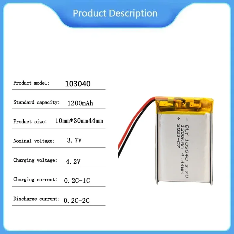 103040 литий-полимерный аккумулятор 3,7 В, 1200 мАч.