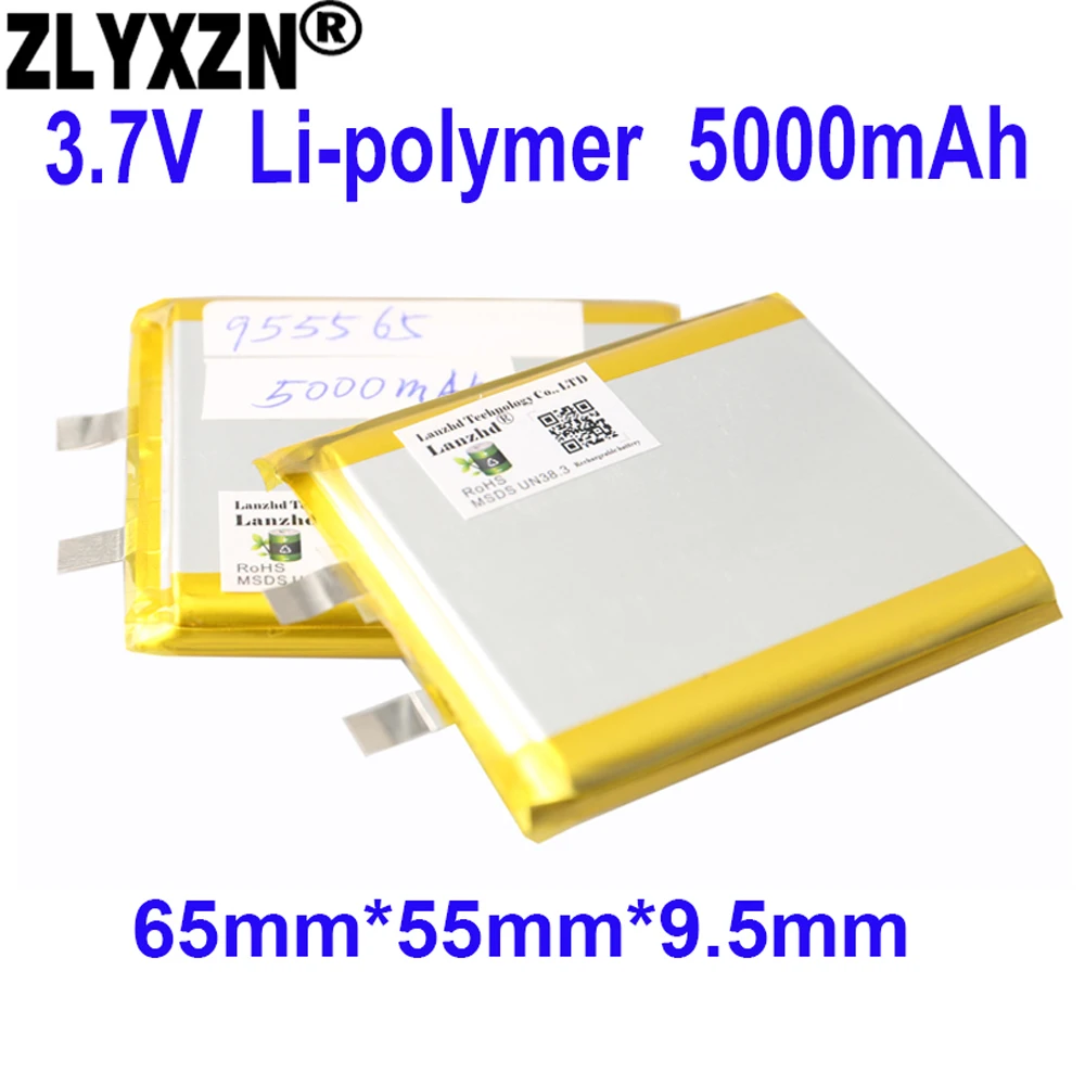 Литий-полимерные аккумуляторы, 3,7 в, 55 х65х1, 5 мм, 9,5 мАч, 1-12 шт