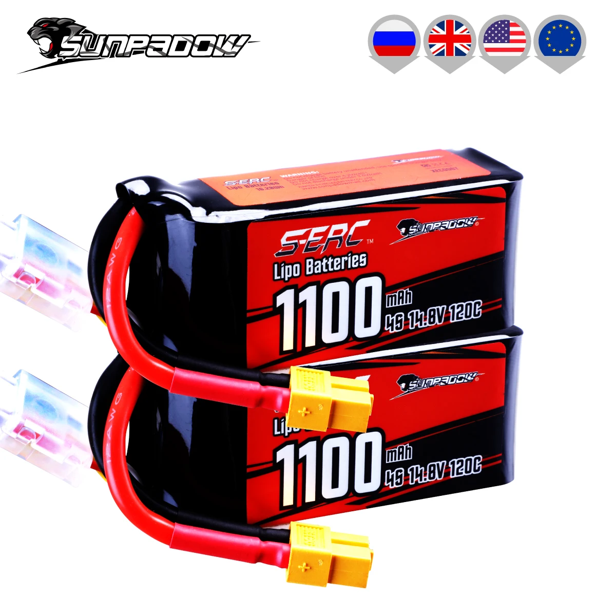 SUNPADOW 2 шт 4S 14,8 V Lipo батарея 1100mAh 120C мягкая упаковка с XT60 вилкой для RC FPV Вертолет Самолет Дрон Квадрокоптер хобби