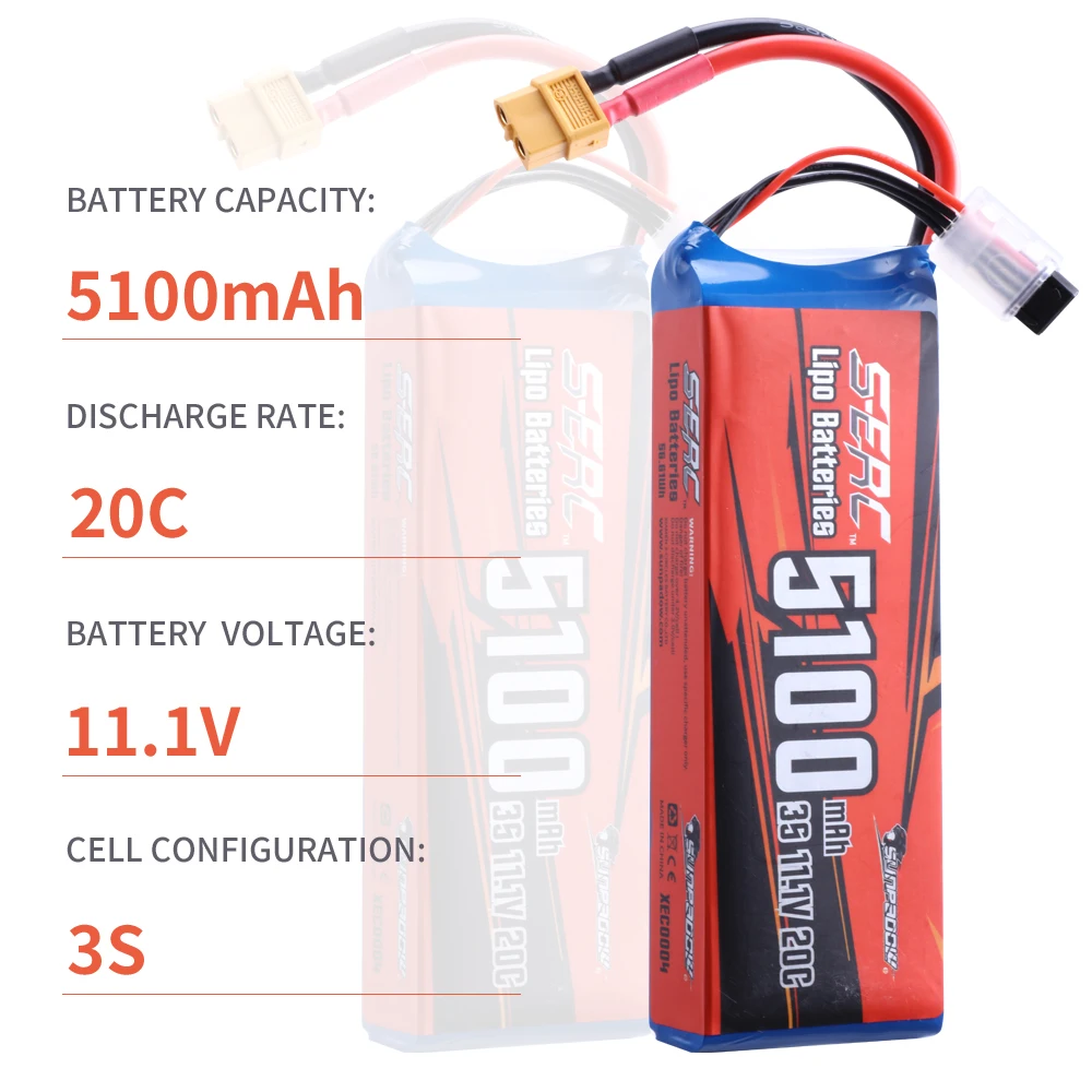 SUNPADOW 3S 20C Lipo Батарея 5100 мАч 11,1 В с разъемом XT60 для RC Самолет Вертолет Дрон FPV Квадрокоптер Модель Гонки