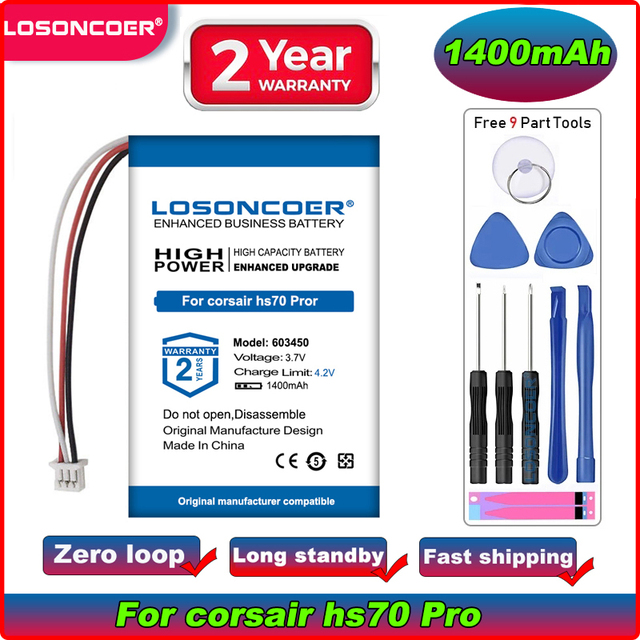 Липо-полимерный аккумулятор LOSONCOER 1400 мАч для беспроводной игровой гарнитуры Corsair HS70, HS75 XB , RDA0031 RDA0034 Corsair HS70 Pro