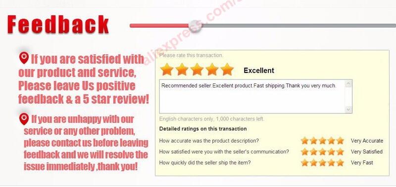 Примечание: если товар поврежден при транспортировке, или вы не получили товар вовремя, или вы не удовлетворены качеством товара и т. Д., пожалуйста, свяжитесь с нами, прежде чем открывать спор или оставлять отрицательный отзыв. Мы постараемся сделать все возможное, чтобы предоставить вам одно хорошее решение!