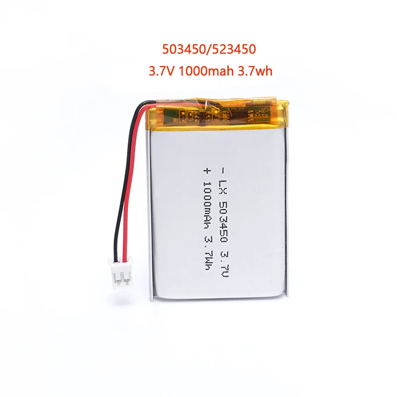 Реальная емкость 1000 мАч 3,7 В 503450/523450 Полимерная литиевая аккумуляторная батарея PH2.0 2Pin для смартфона GPS MP5 Мобильный телефон, DVD, камера